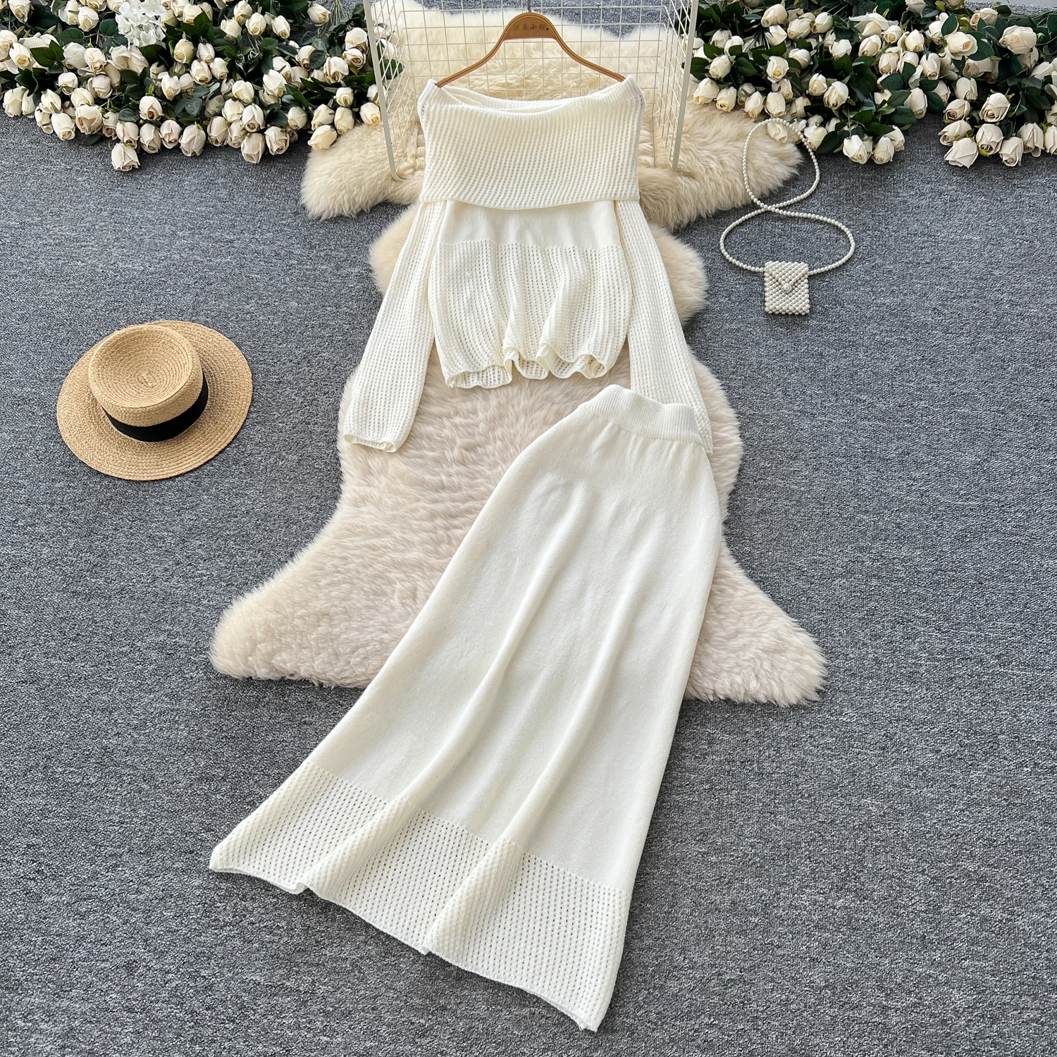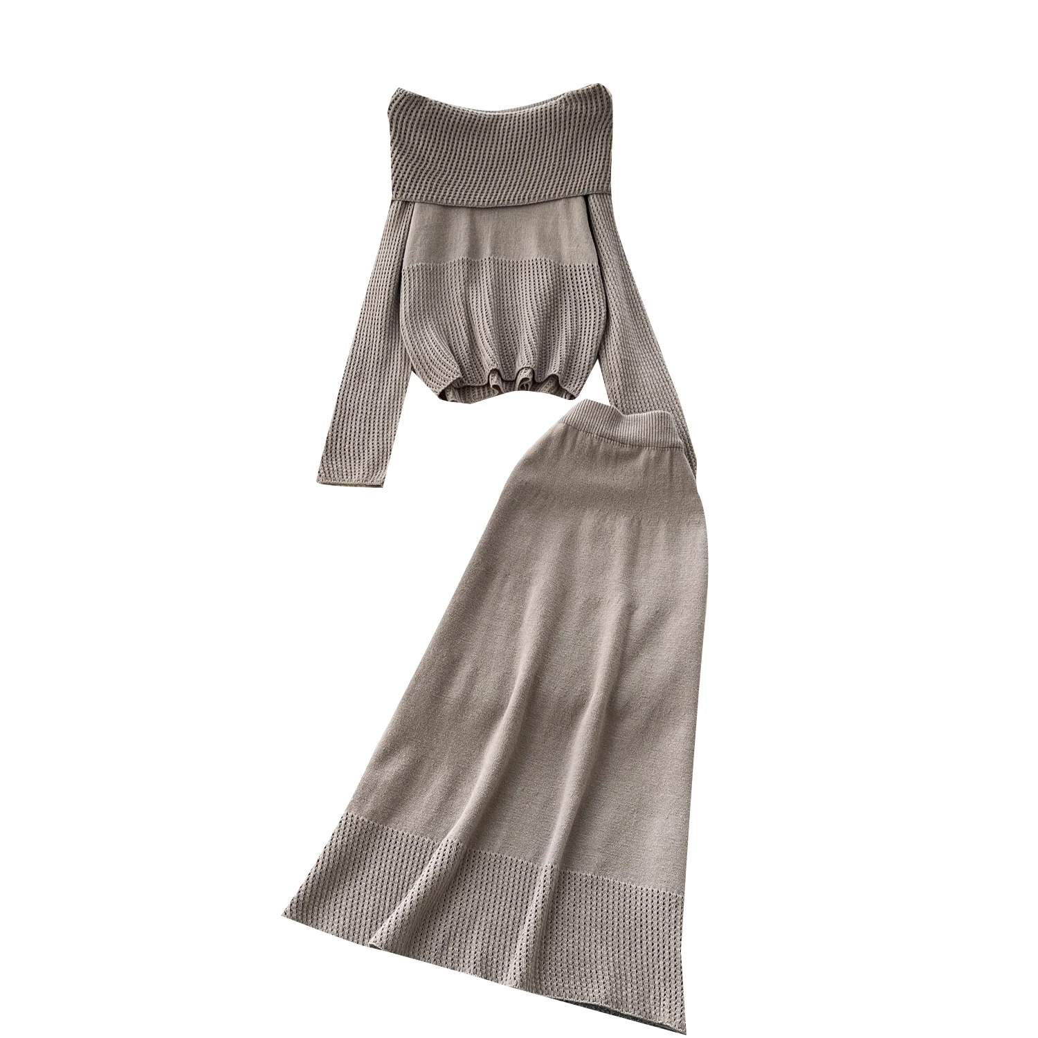 Fall Elegant Loose 2 Piece Set for Women Top And High Waist Knitted Skirts Suit Clothing Wholesale