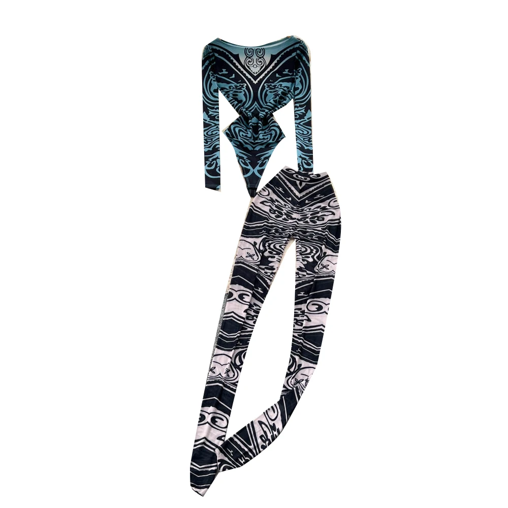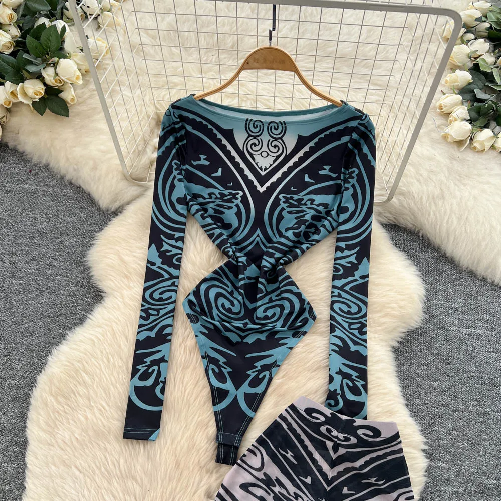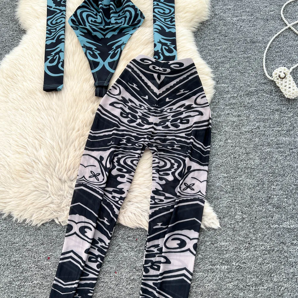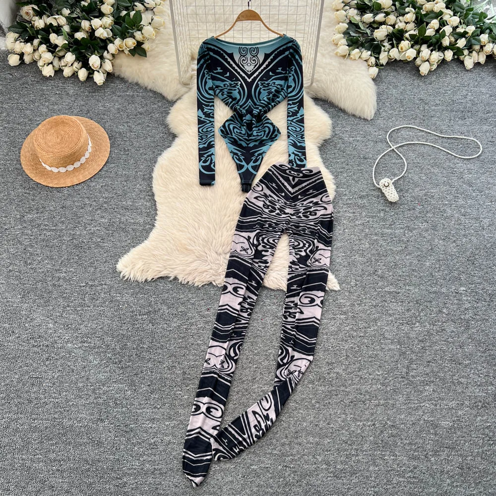 Fall Women’s Y2K Sets Top And Printed Slim Mesh Pants Suit American Clothing Wholesale