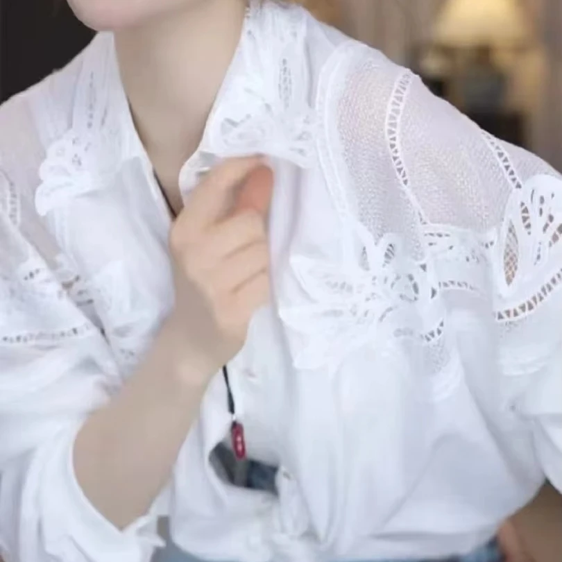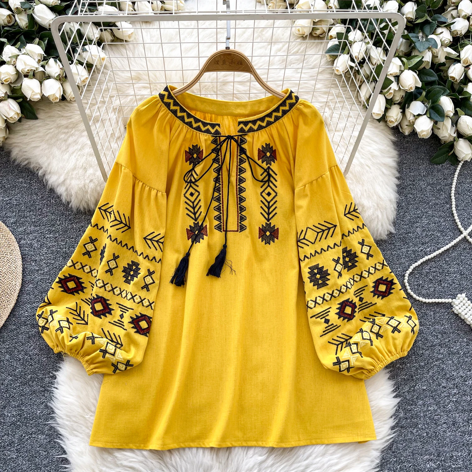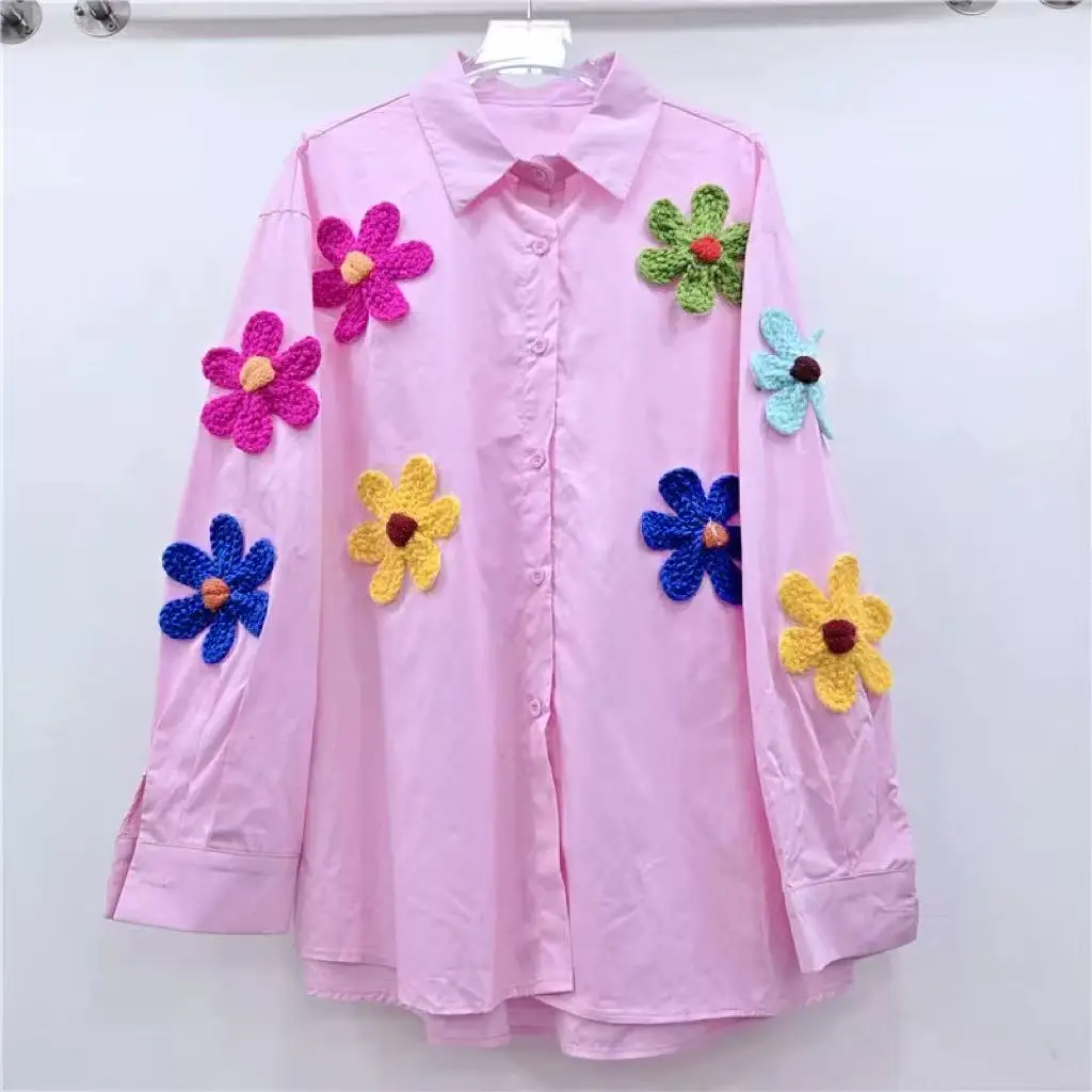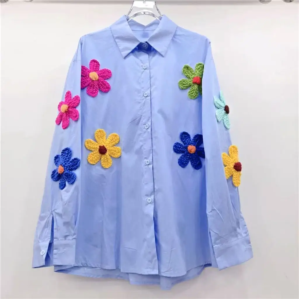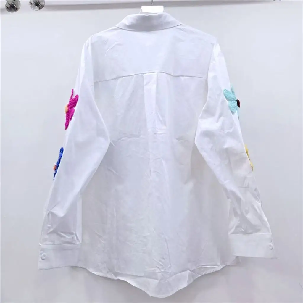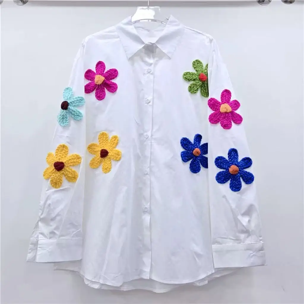 Flowers Cotton Shirt for Women Long Sleeve Blouses and Shirts Female Clothing Autumn Loose Casual Top
