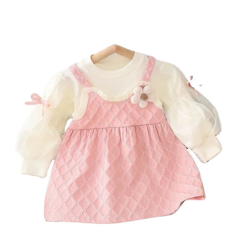 Girl’s Dress Fashionable Girl Bubble Sleeves Princess Dress Spring and Autumn Long Sleeved Skirt
