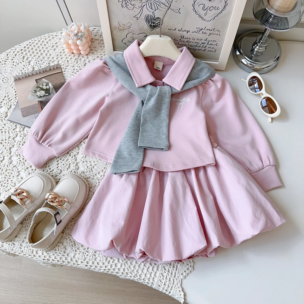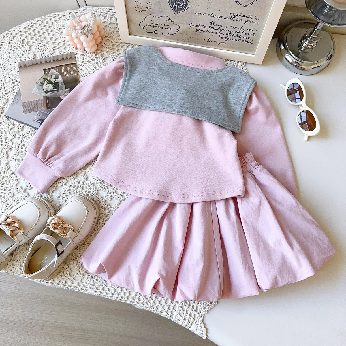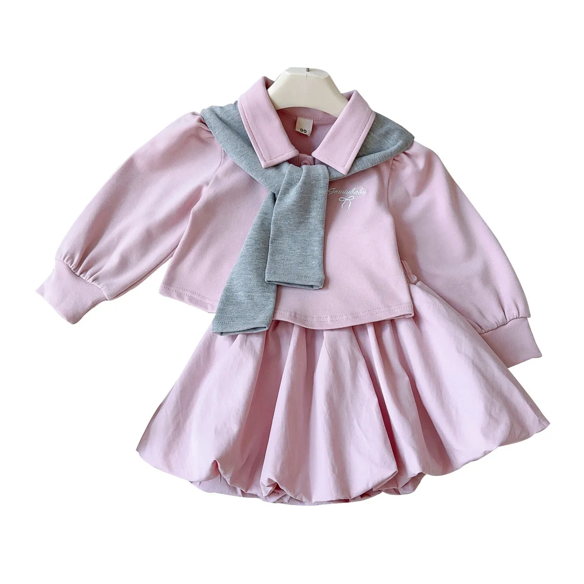 Girls’ Spring/Autumn Sweet Set New Style Long-Sleeved Top and Plaid Skirt with Worested Fabric Throw Blanket