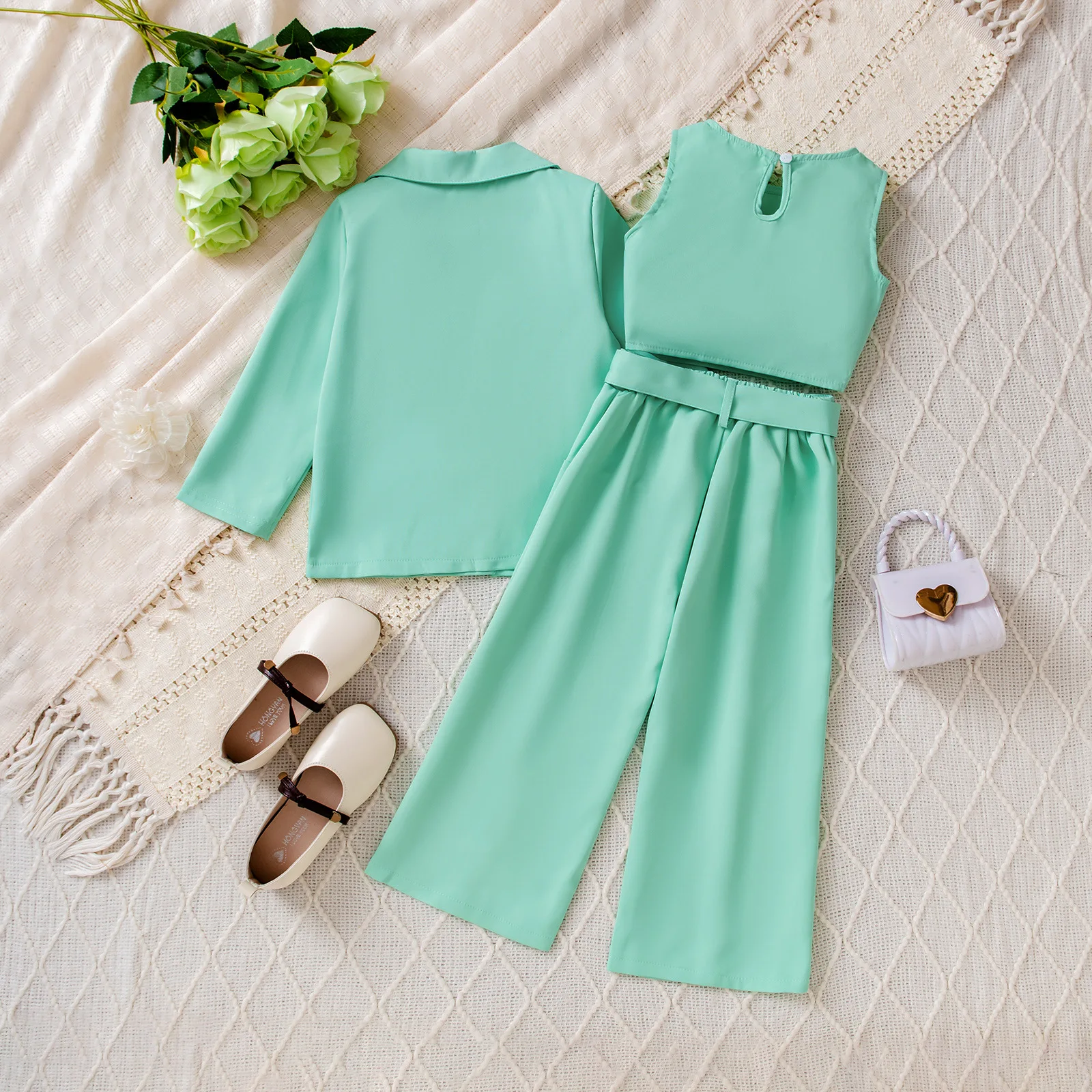 Girls Suit Autumn New Long-sleeved Base Shirt Trousers Belt Four-piece Set