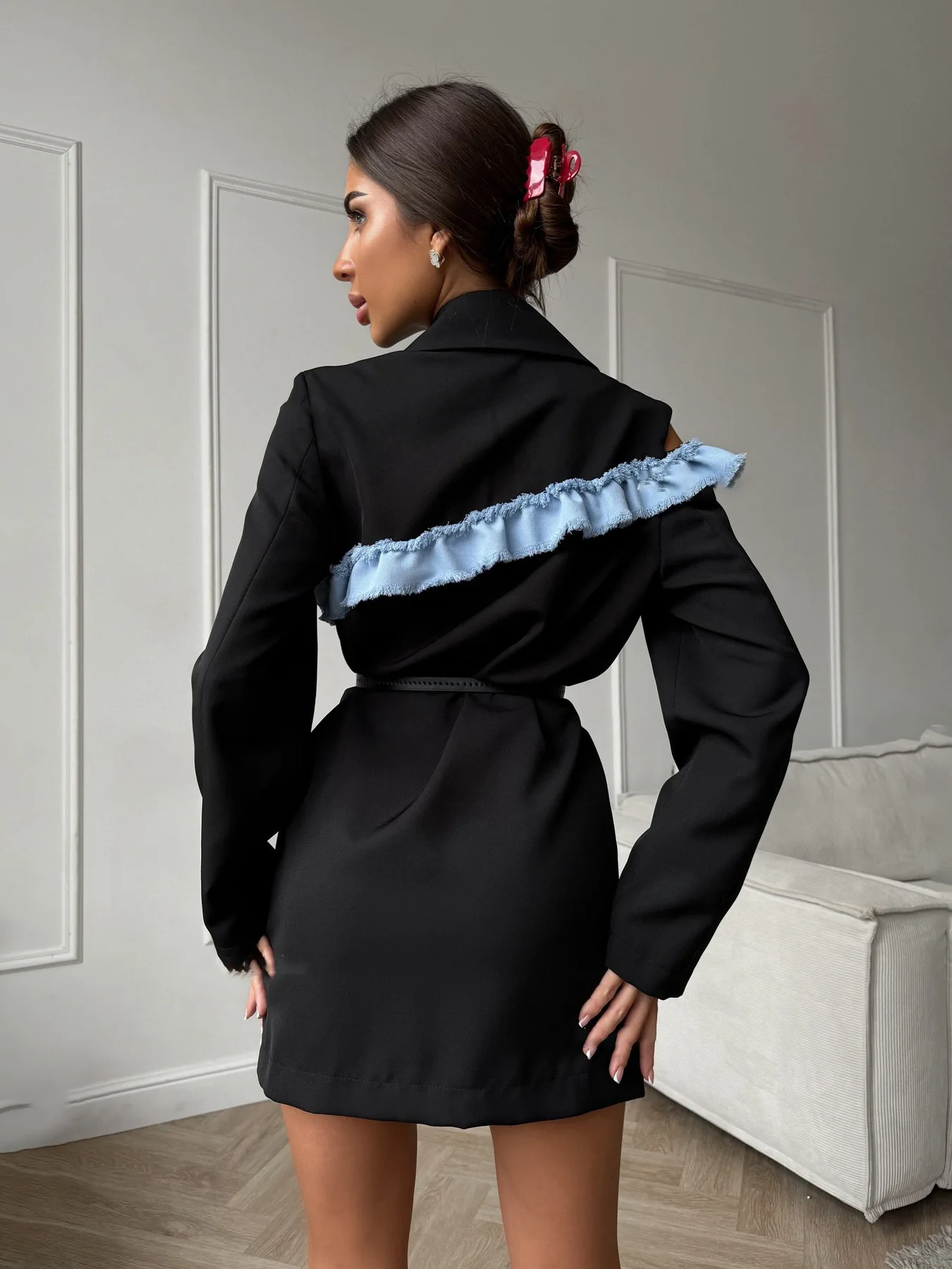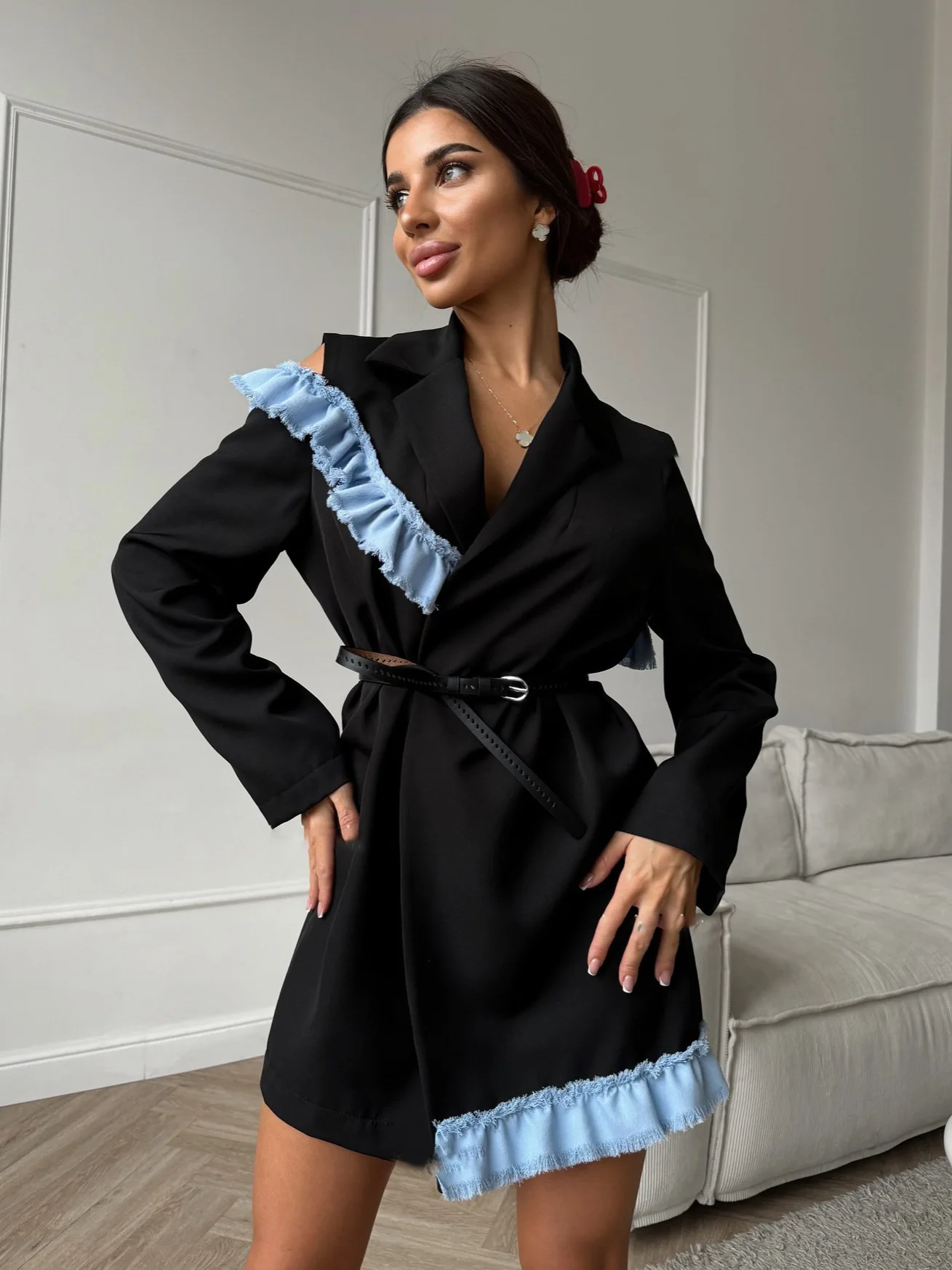 High-End Customizable Women’s V-Neck Suit Dress Long Sleeve Fashion Trend Empire Waistline Solid Pattern for Autumn Wholesale