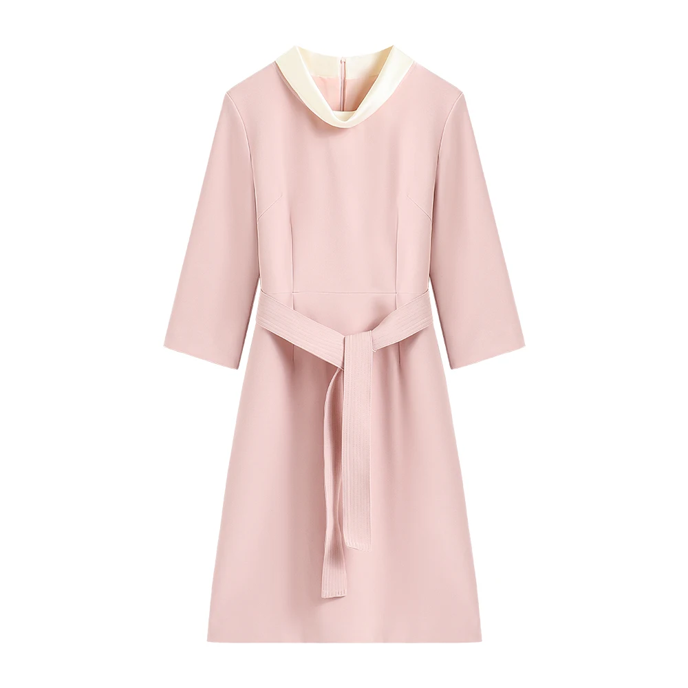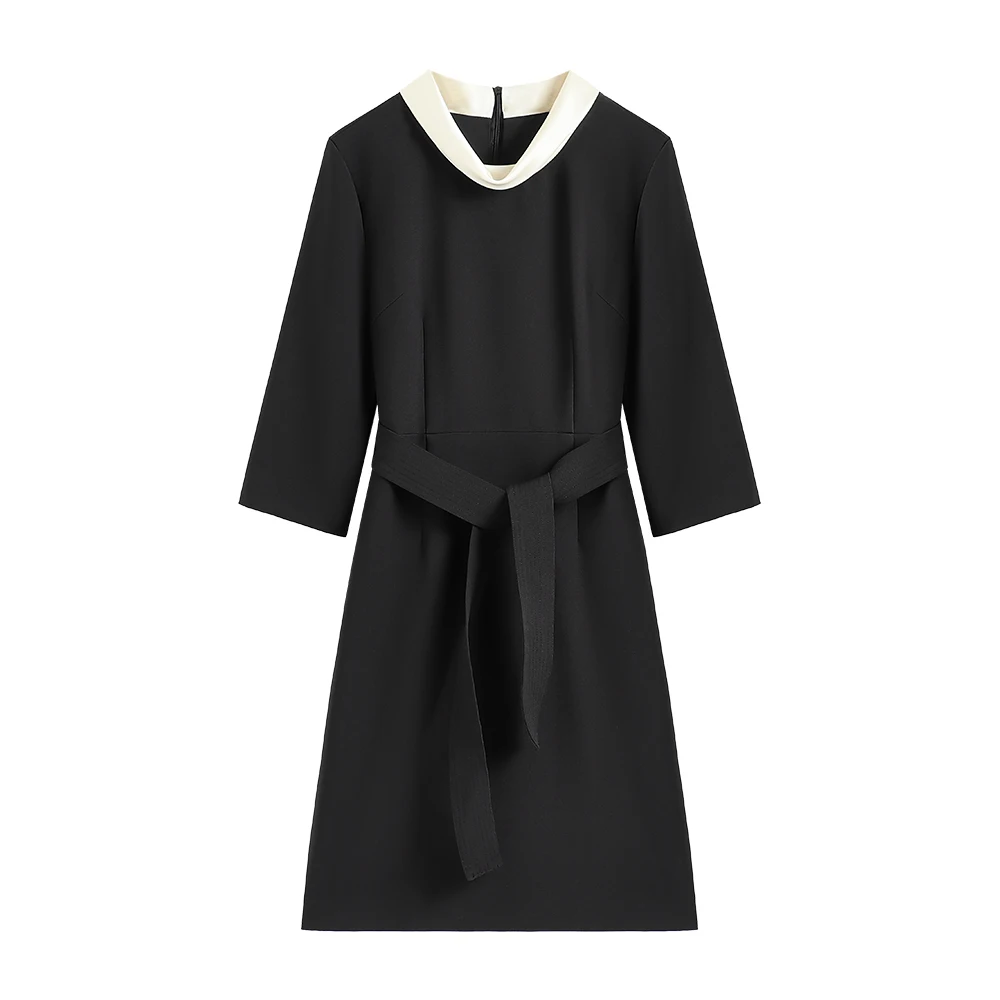 High-End French Chic Socialite Dress Autumn New Celebrity Style Casual Midi Length Front Logo Natural Solid