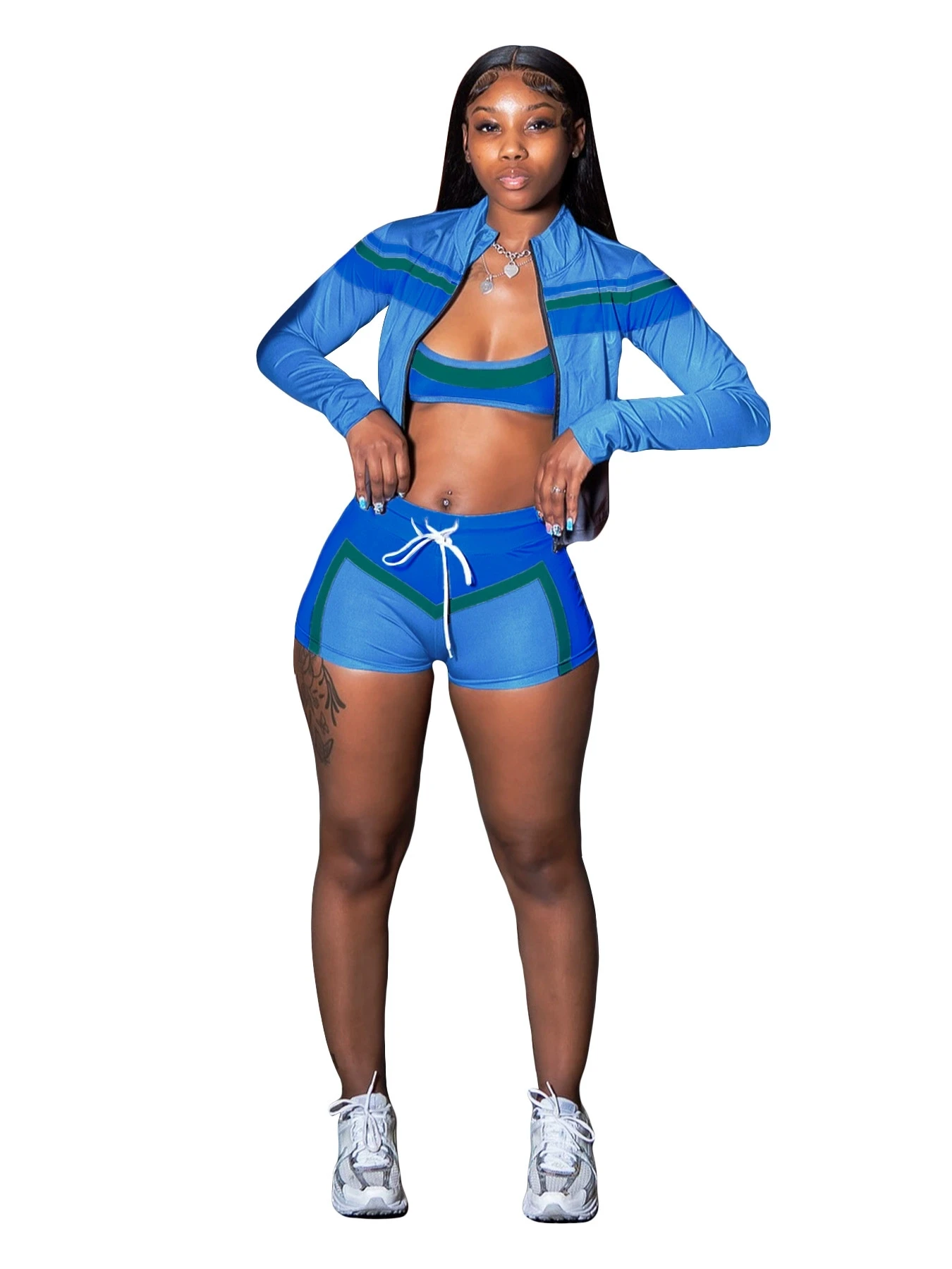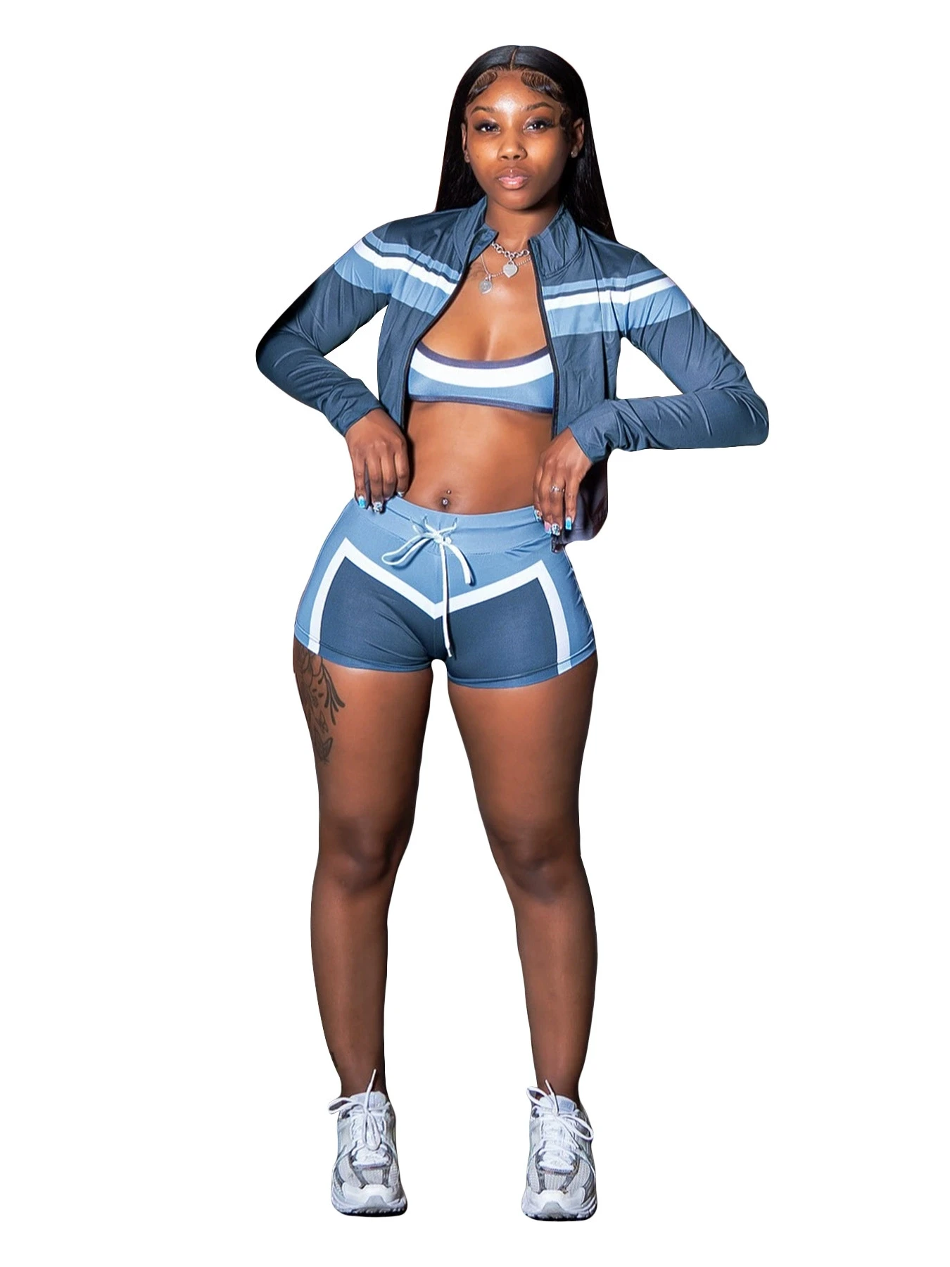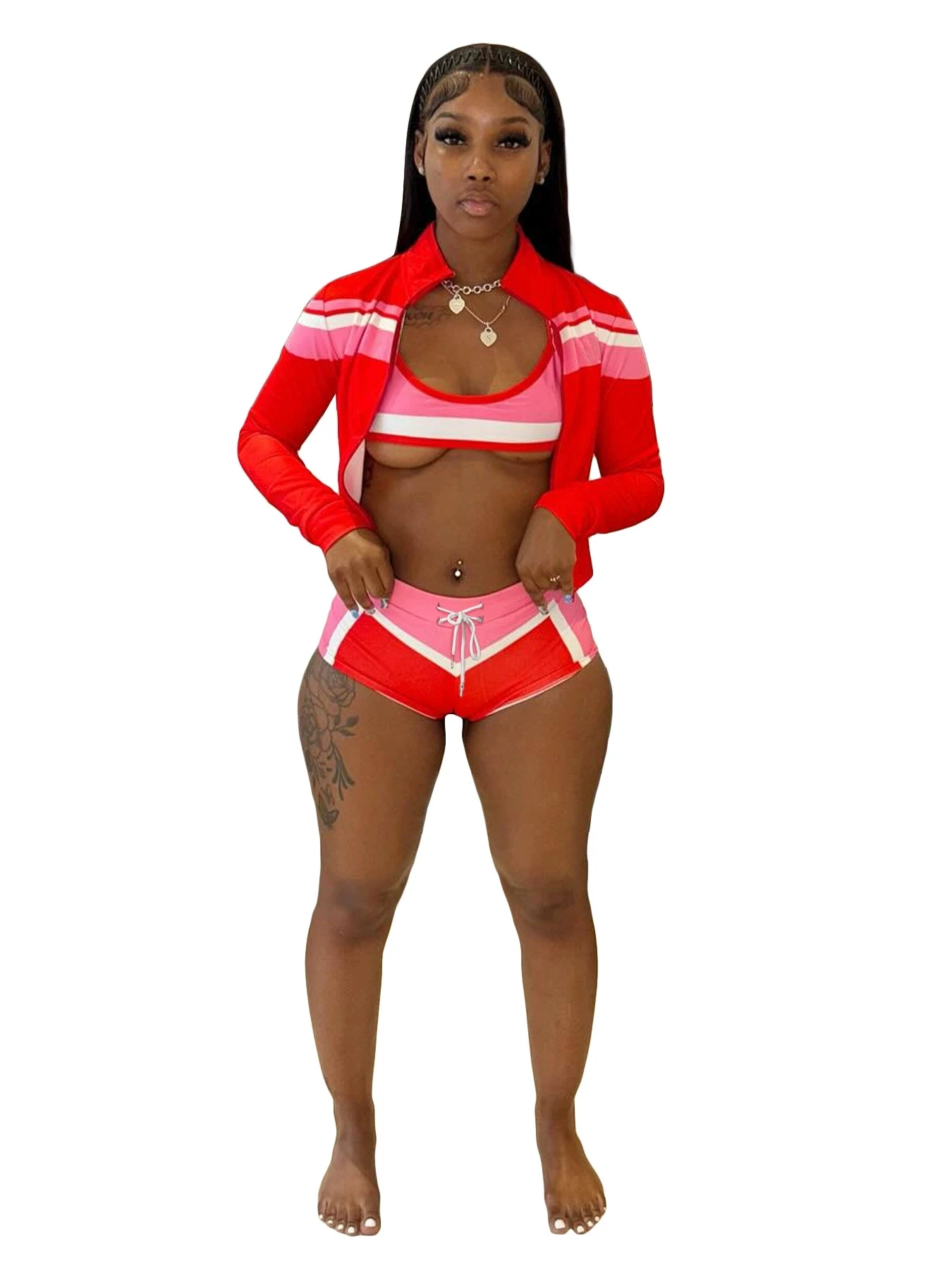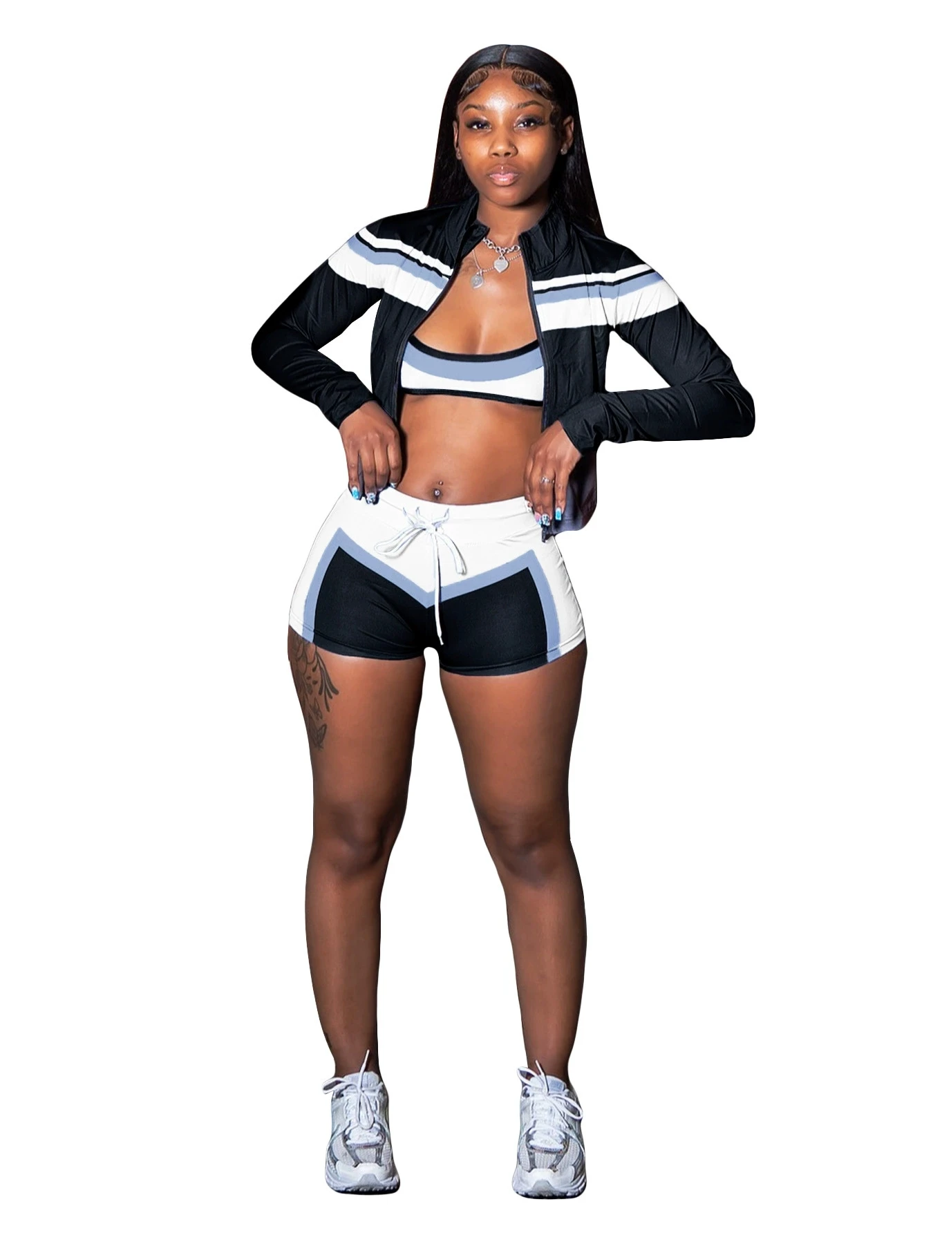 HR25032 2025 New Autumn Women’s Clothing Three-Piece Sports Set Long Sleeve Halter Tube Color Blocked Streetwear Women’s Sets