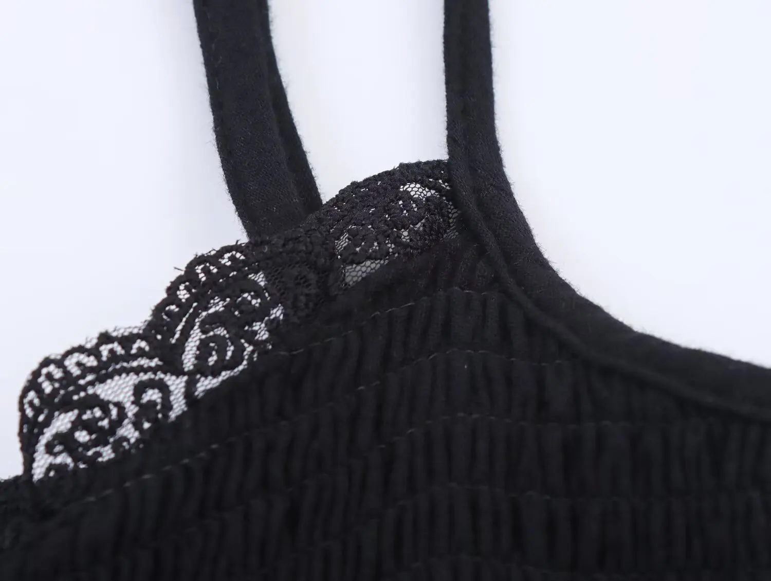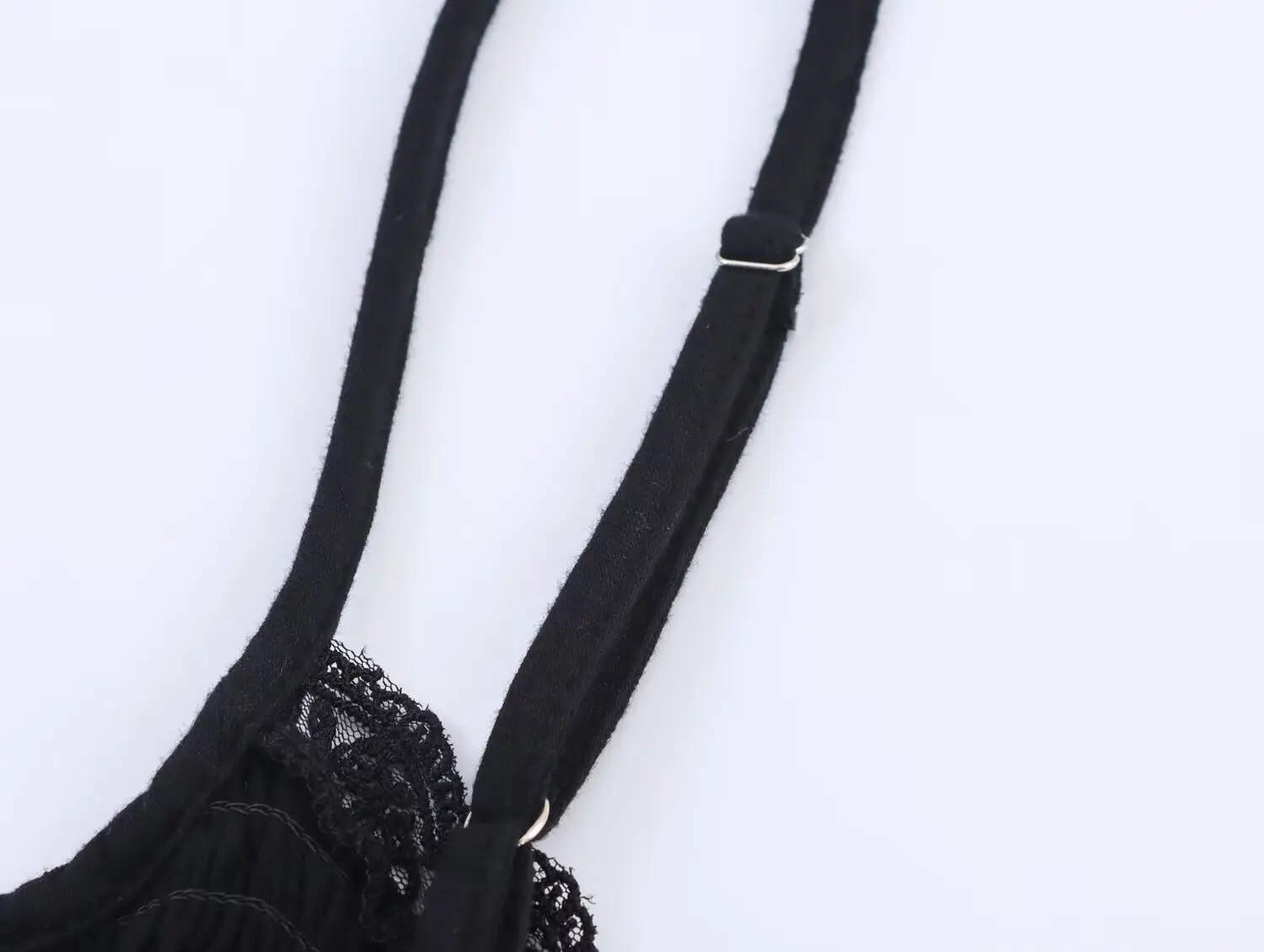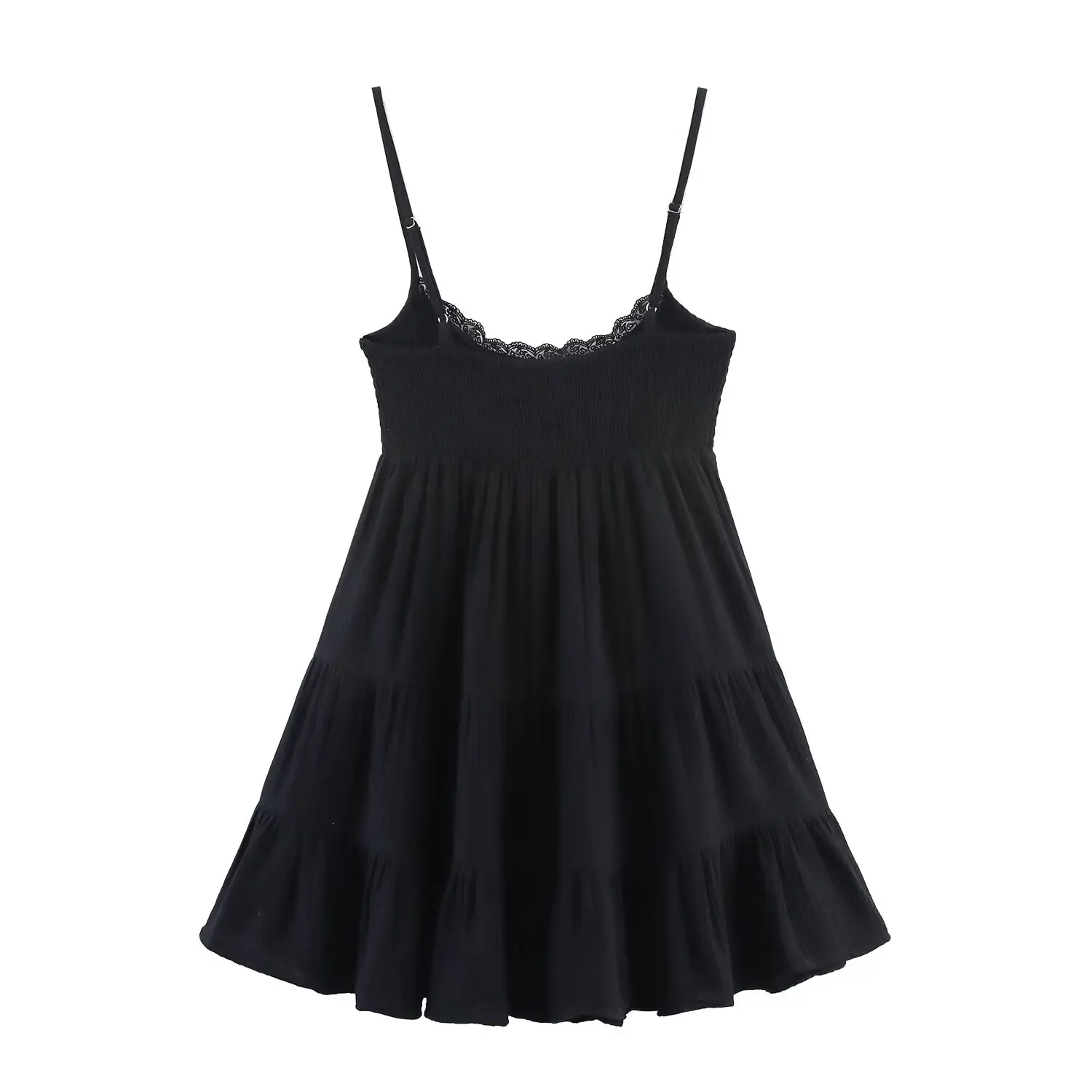 KAR&OT ZA 2025 Autumn New Temperament Leisure Fashion Adjustable Thin Strap Lace Decoration Tulle Short Dress 0881319