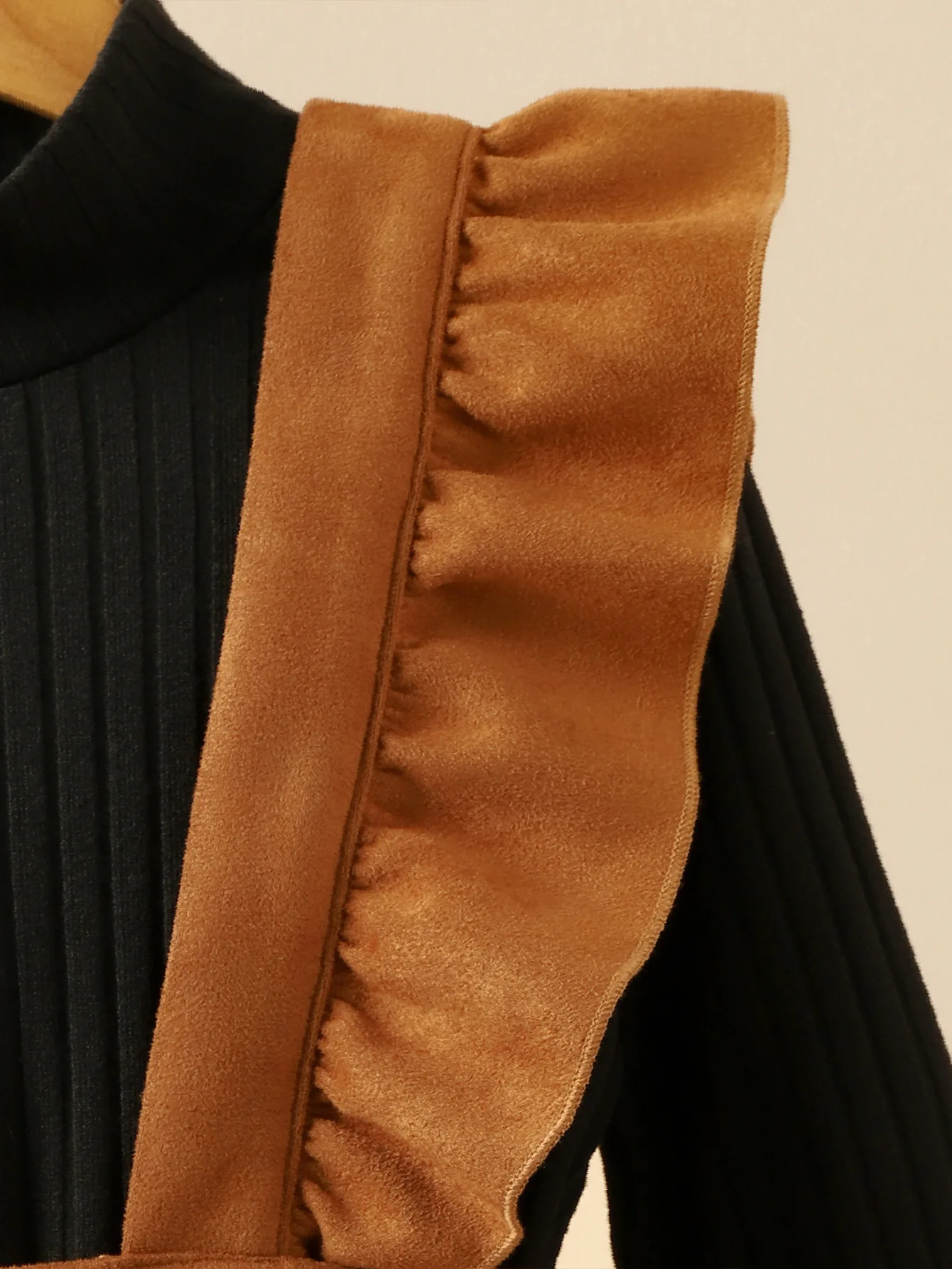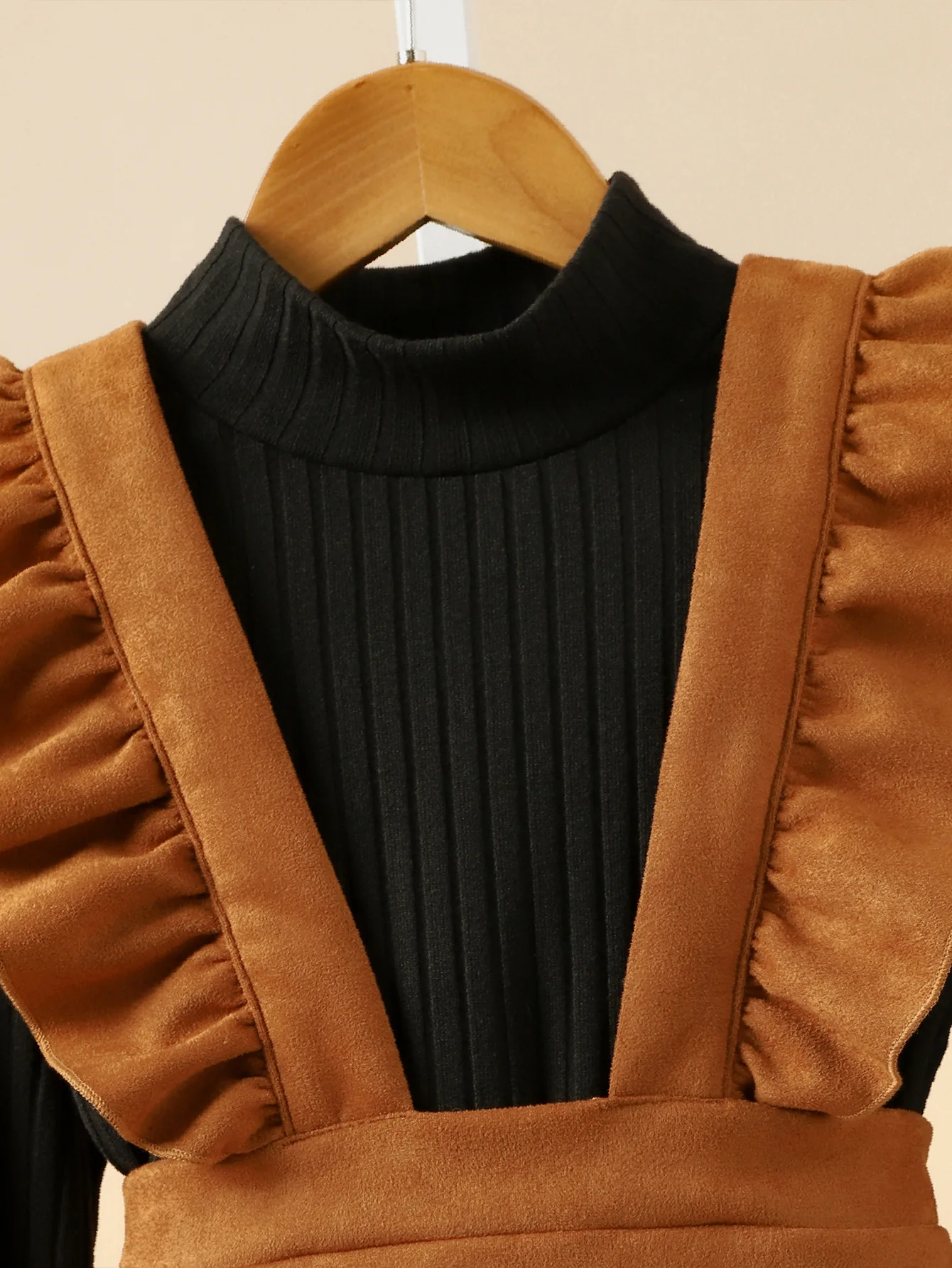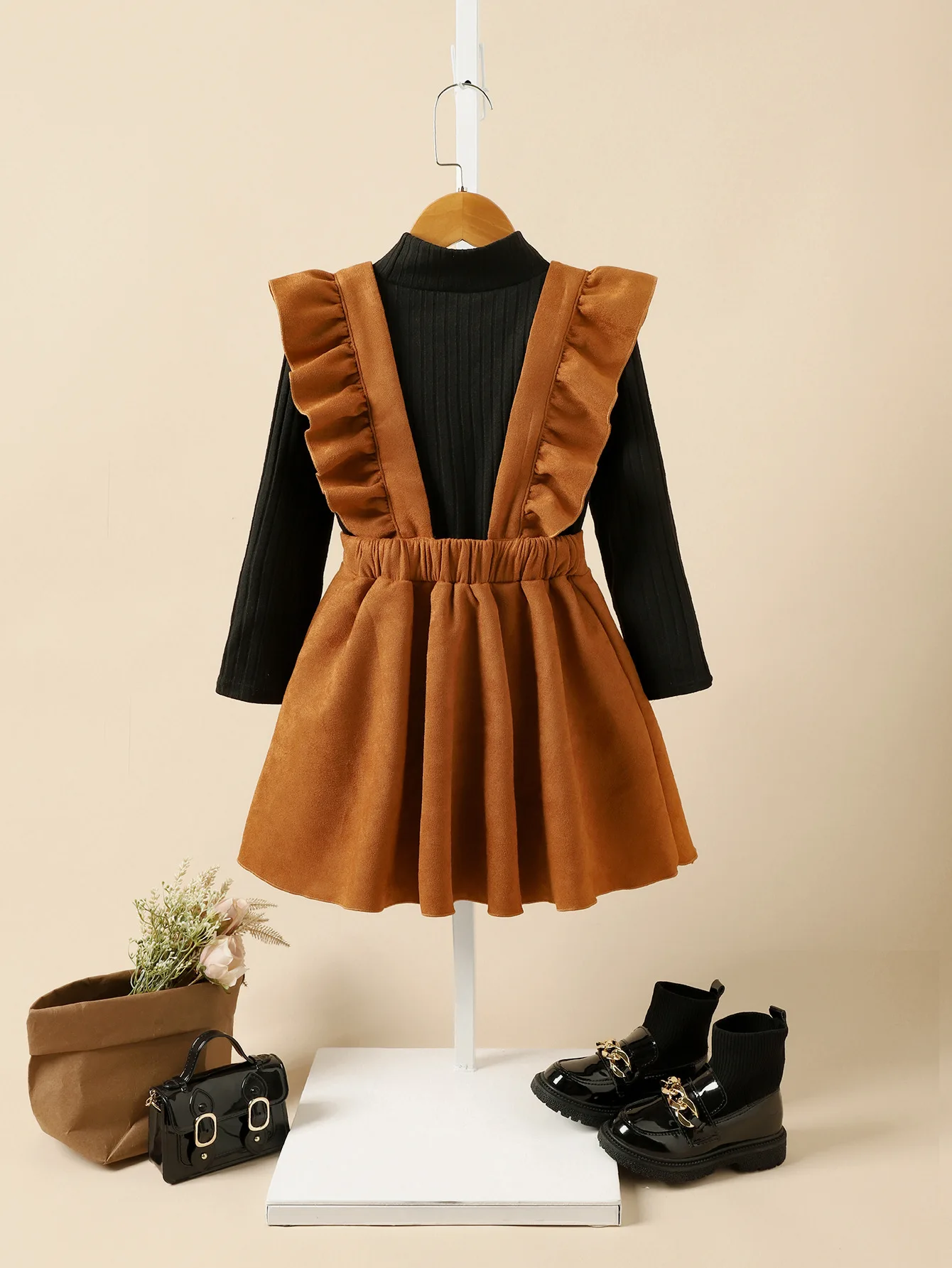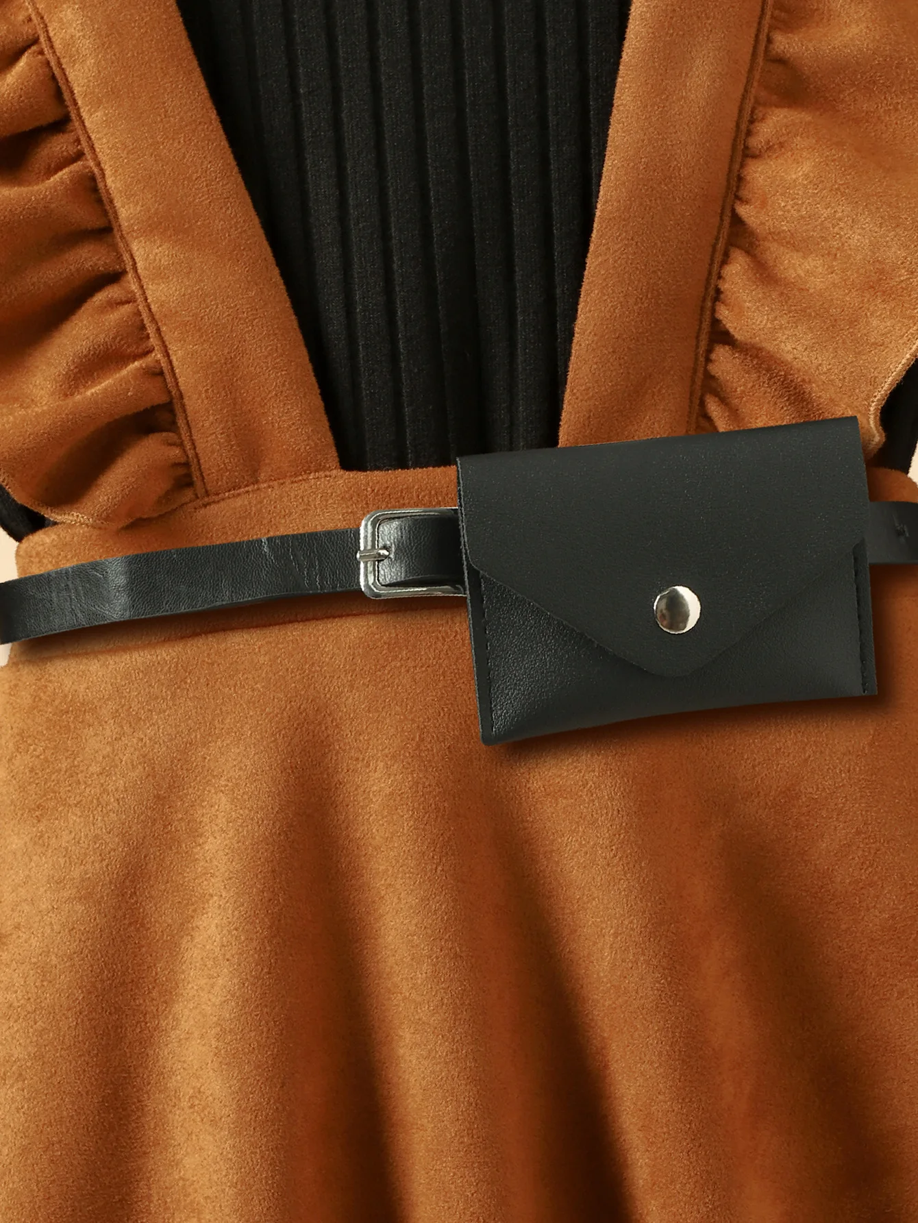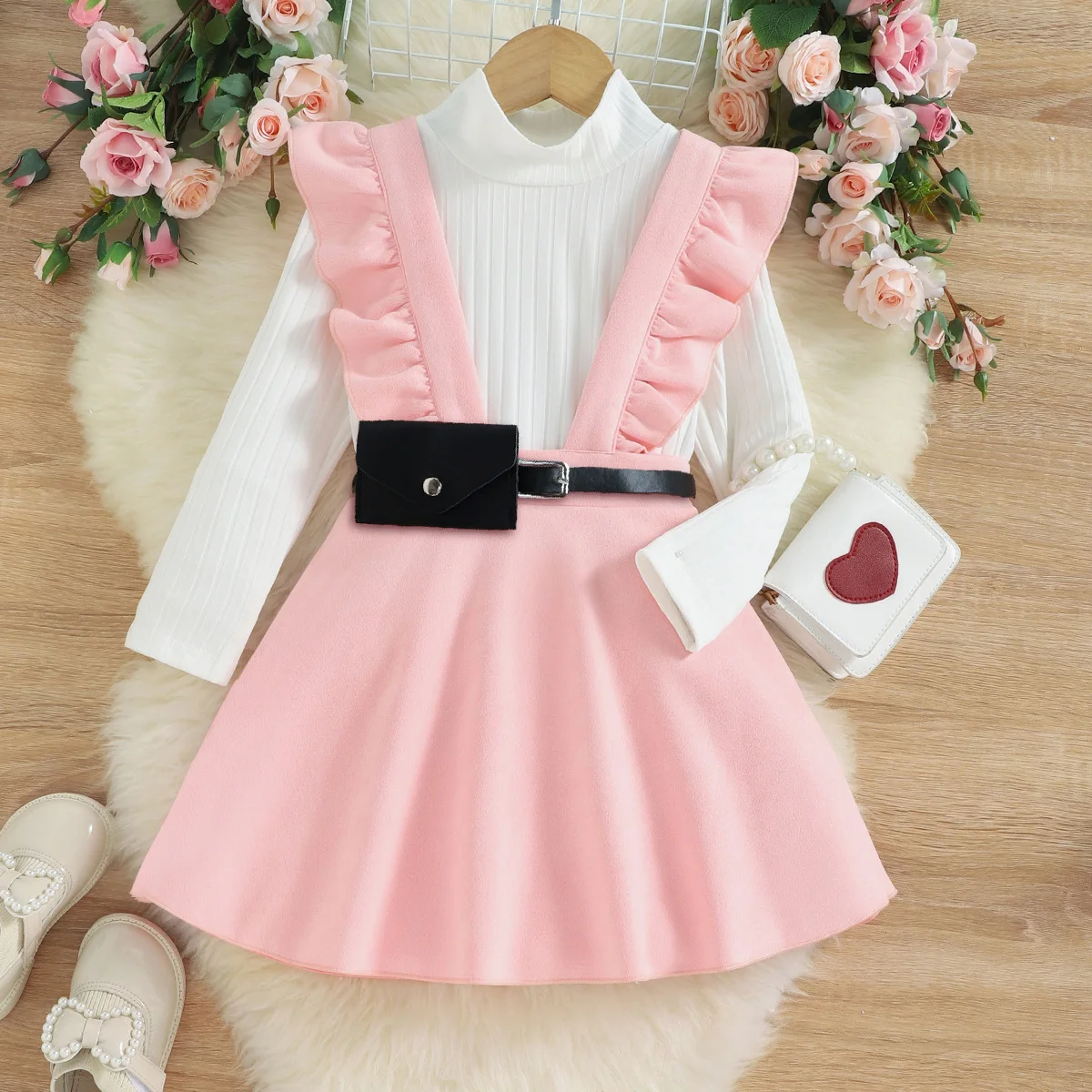 Korean Style Autumn and Winter Children Clothing Knitted Bottoming Shirt Suede Overalls Skirt Waist Bag Girls Three-piece Suit