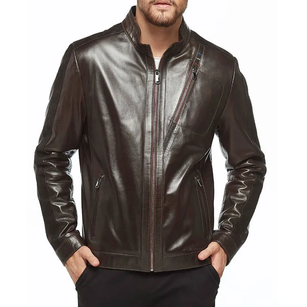 Men’s Premium Quality Winter Leather Jacket Slim Fit Stand Zipper Long Sleeves Breathable Light Fabric Custom Men’s Jackets
