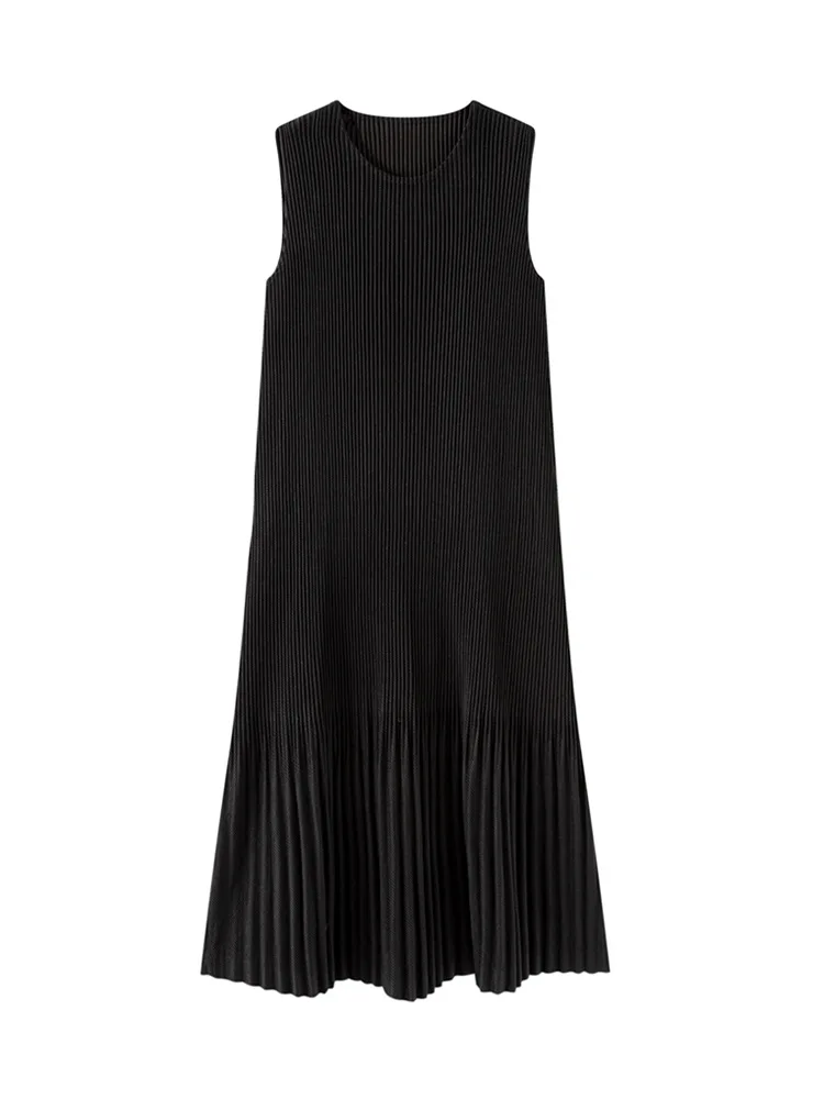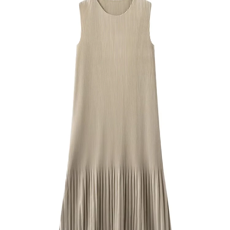 Miyake 2025 Autumn Children’s Elegant Slim Long Skirt Dress Casual Chiffon Pleated Sleeves Draped Design Natural Summer French
