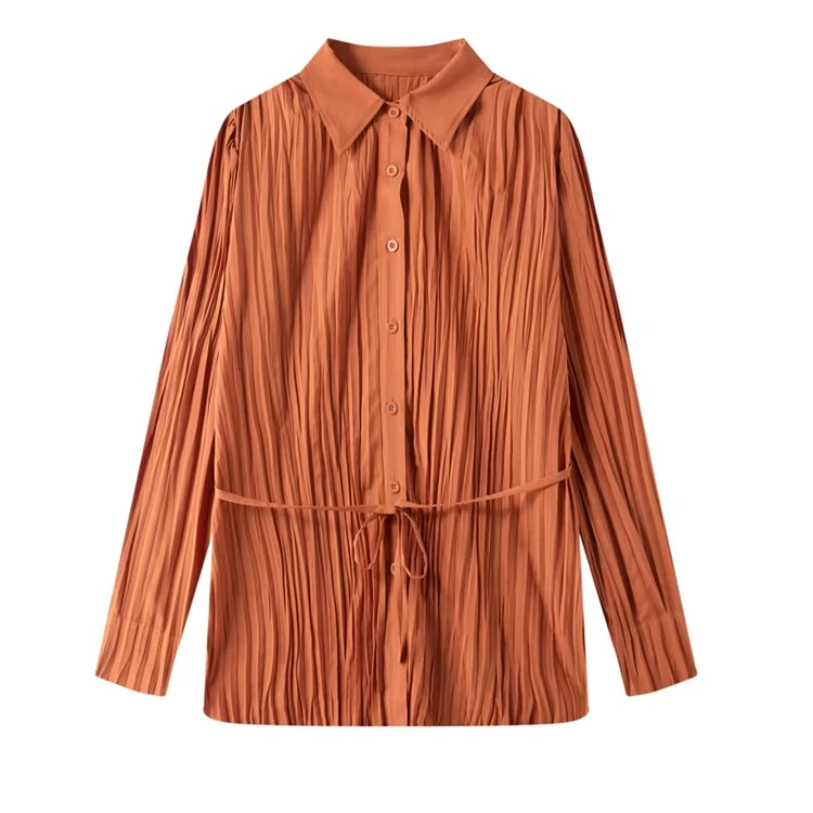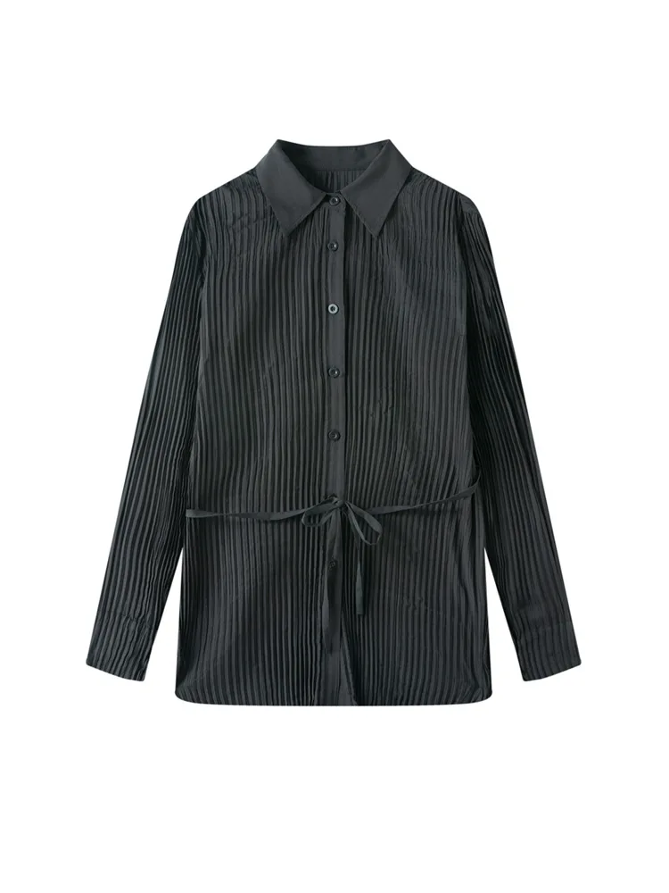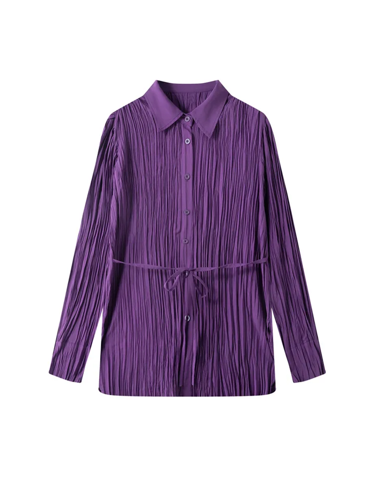 Miyake 2025 Autumn Women’s High-End Pleated Lace-Up Long Top Solid Color Small-Bourgeois Design