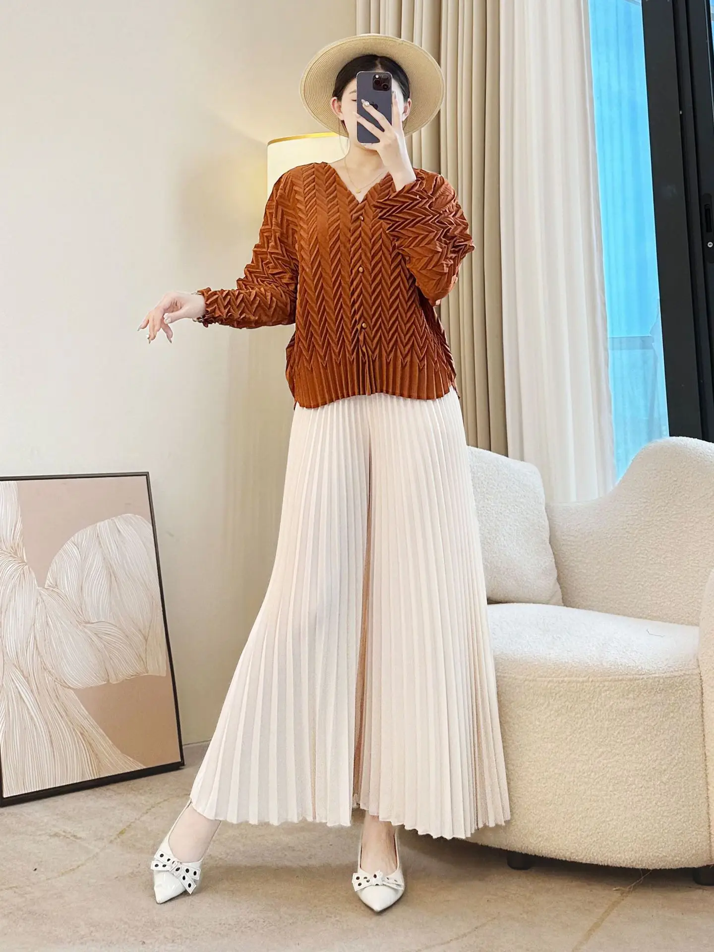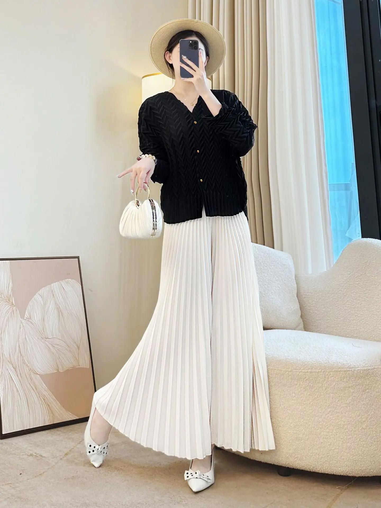 Miyake Women’s 2025 Spring and Autumn Generational Coat Loose Nine Sleeve Short Pleated Top Casual Office Style
