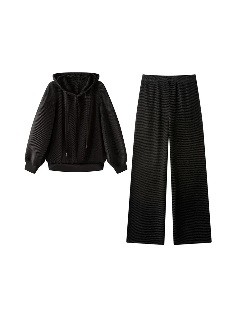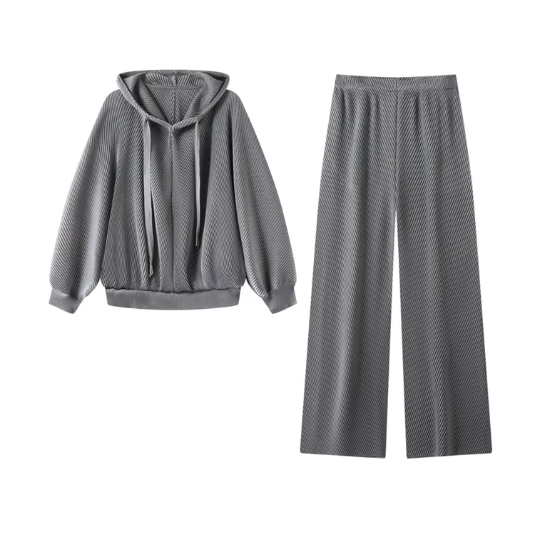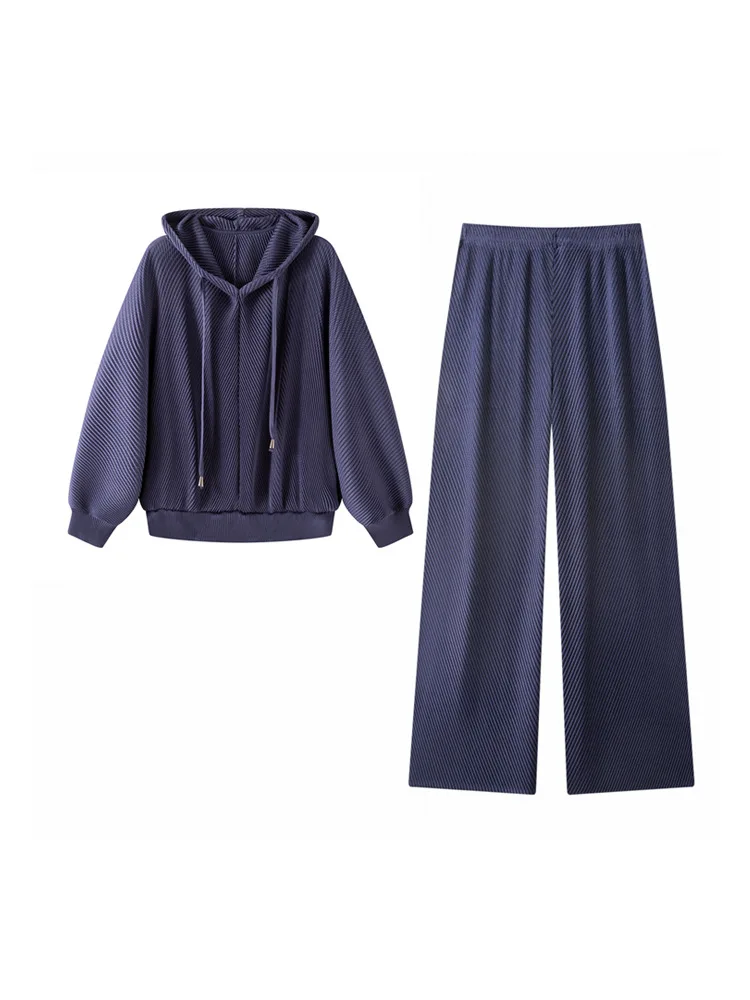 Miyake Women’s Great-looking Two-Piece Autumn Winter Fashion Casual Hooded Sweatshirt Sports Pants Suit Solid Pattern