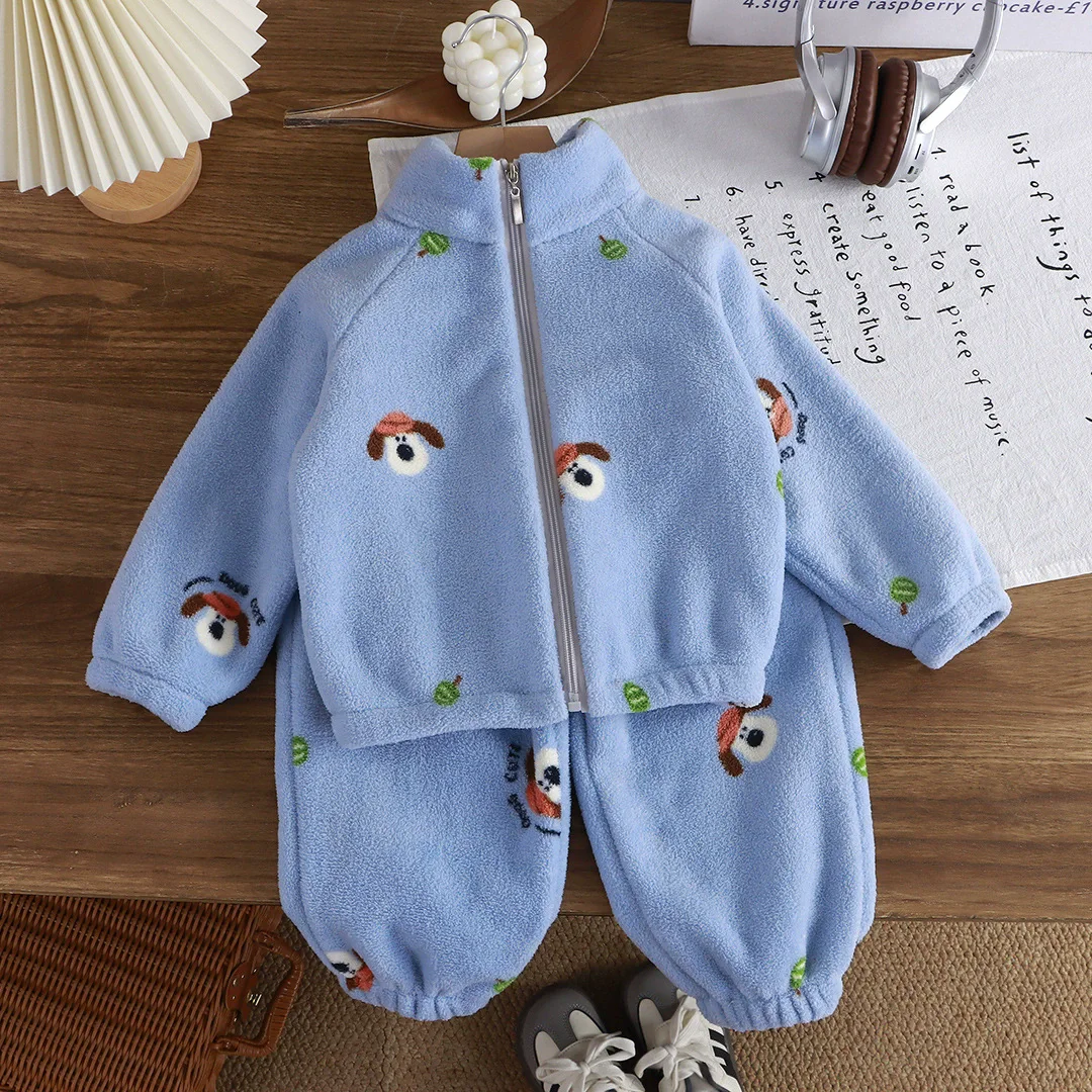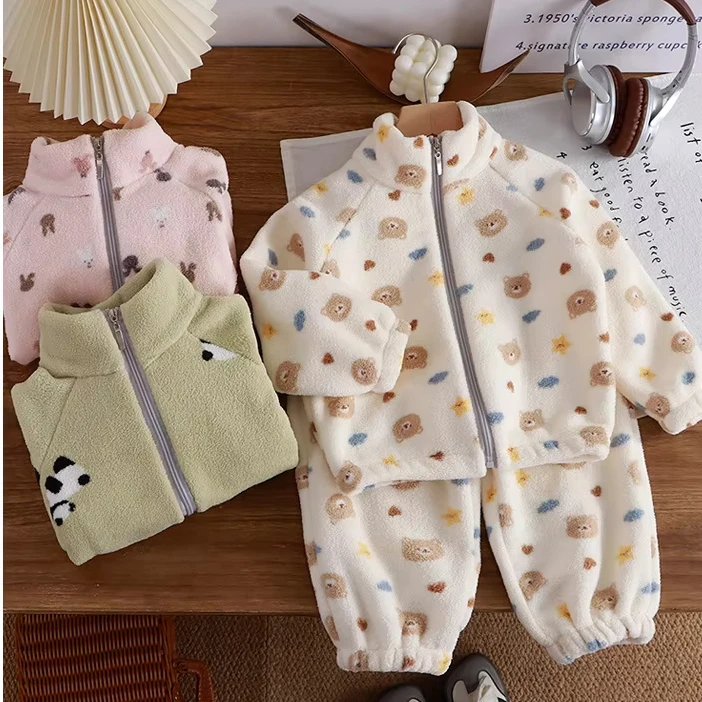 New Autumn and Winter Plush and Thickened Suits Children’s Home Clothes Boys and Girls Warm Suits Children’s Clothing Wholesale