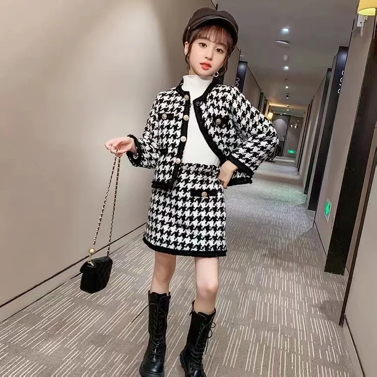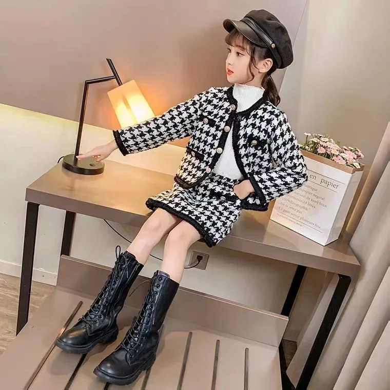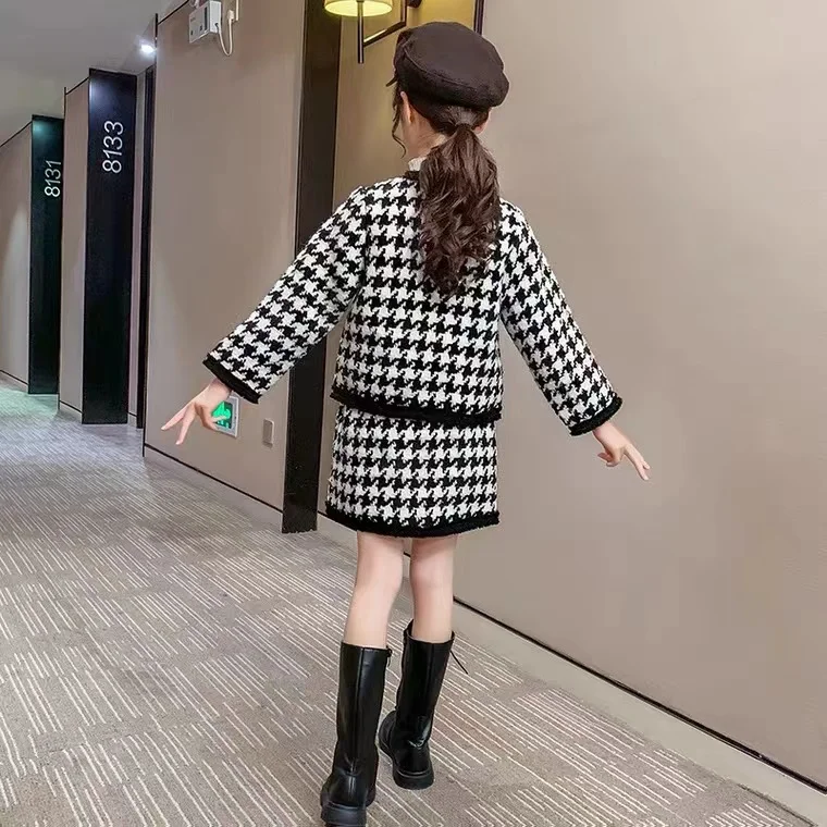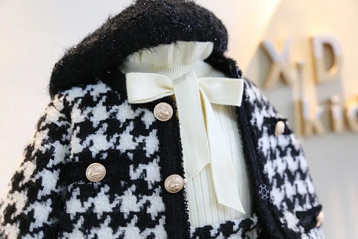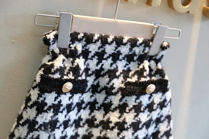 New Boutique Spring Autumn Toddler Girls Clothing Set White Black Plaid Cardigan + Skirt 2 Pcs Clothing Set for Girls