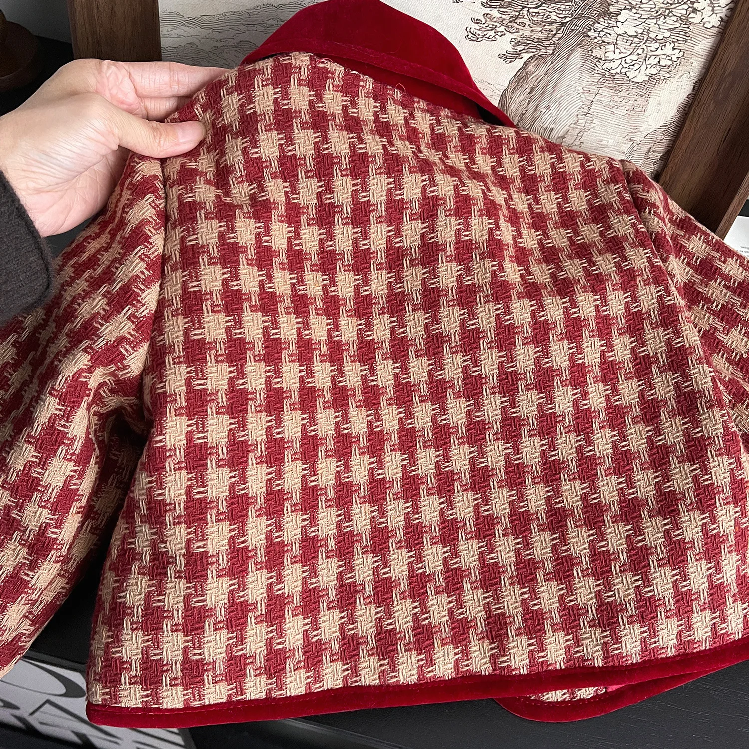 New Girls Christmas Clothes Set Warm Girl Plaid Jacket Ruffle Skirts Two-Piece Suit Red
