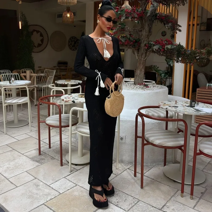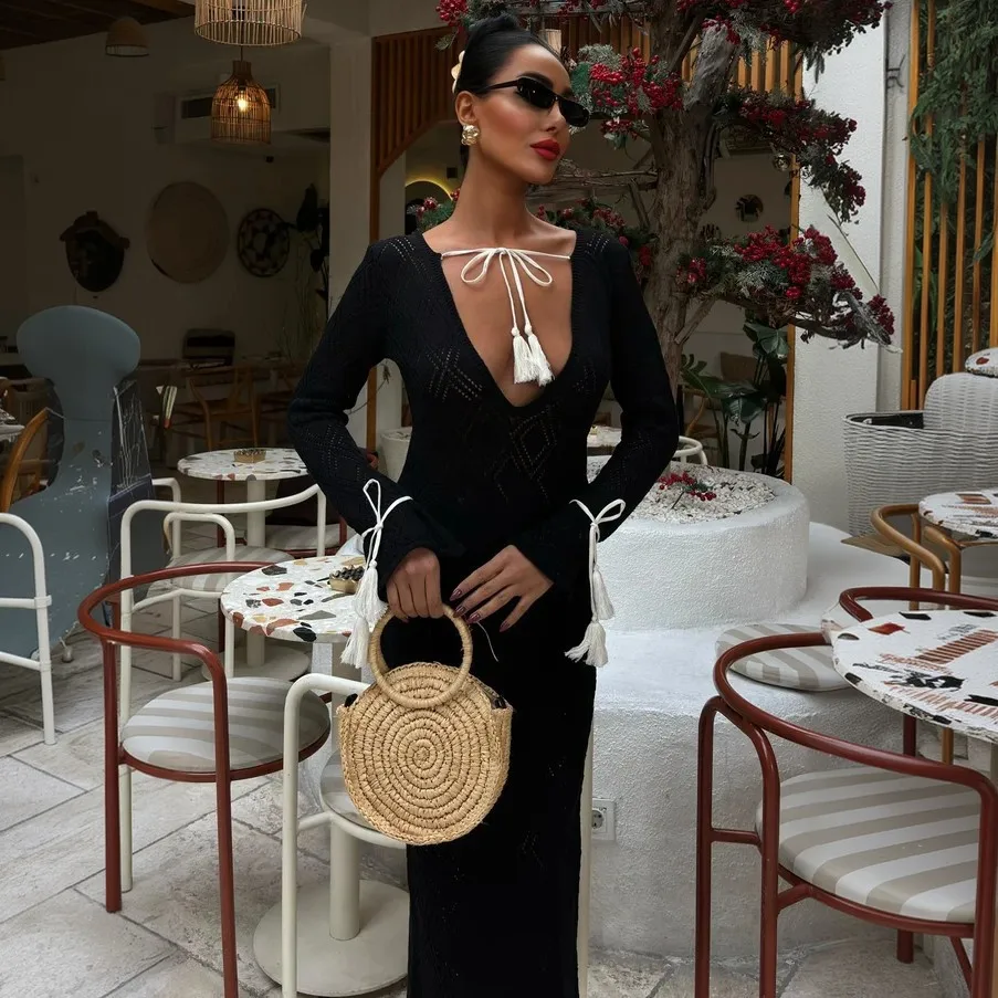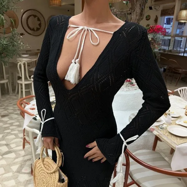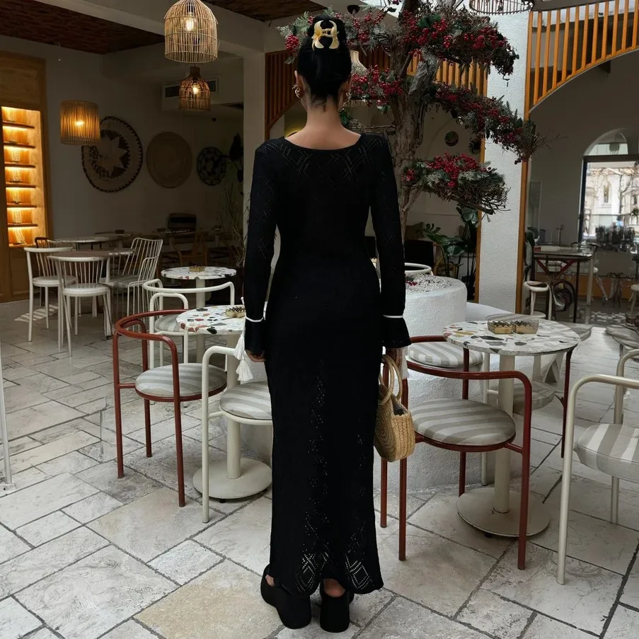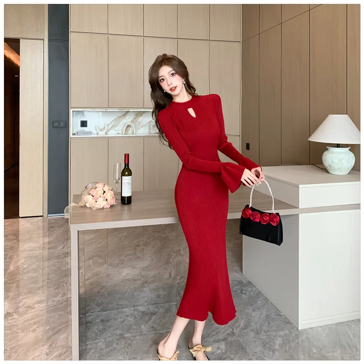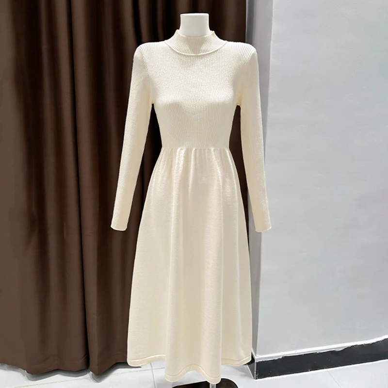 New Women’s European-American French Style Dress Versatile Stylish Design Waist-Cinching Cut Knitted Weaving Simple for Autumn