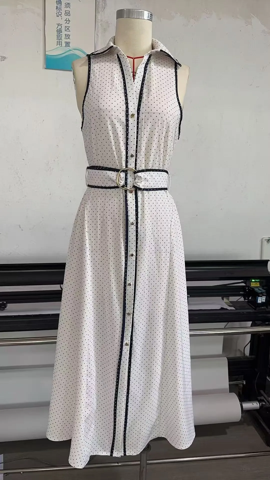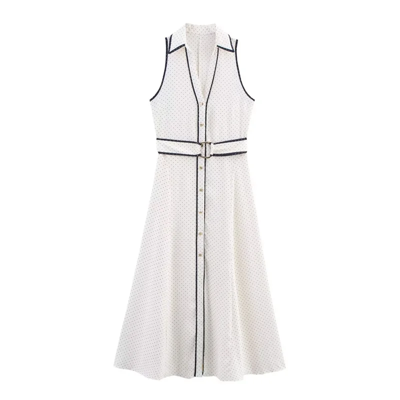 SHENZHU ZA Women’s Clothing 2025 Summer New Style with Belt Contrast Color Stitching Shirt-style Long Dress 3689750
