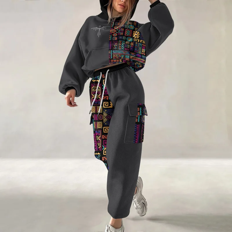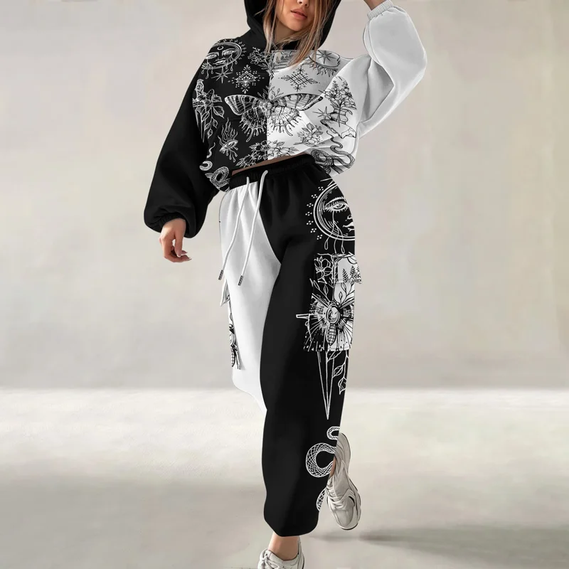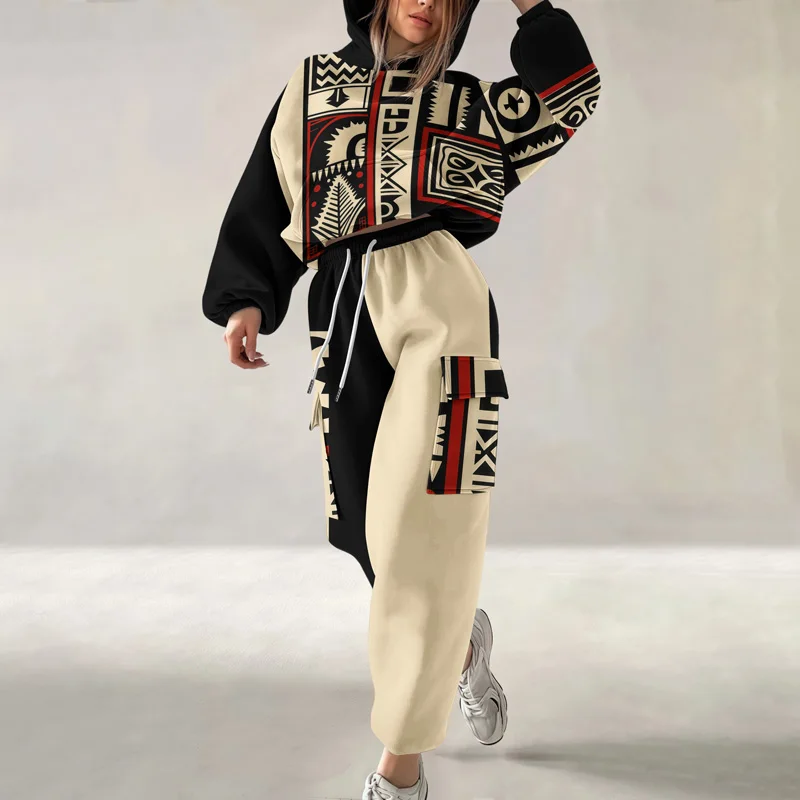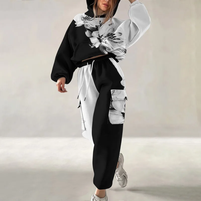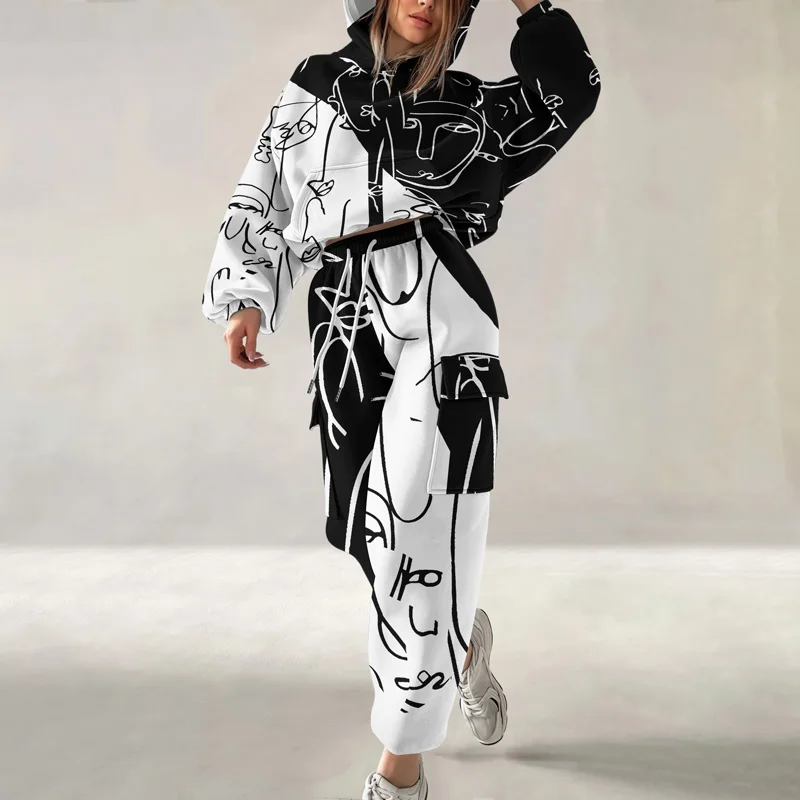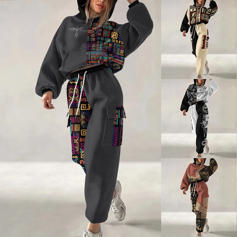 Splicing Women’s Fashionable Warm Hooded Sweatshirt Suit 2025 Autumn and Winter New Style Fabric Comfortable and Breathable