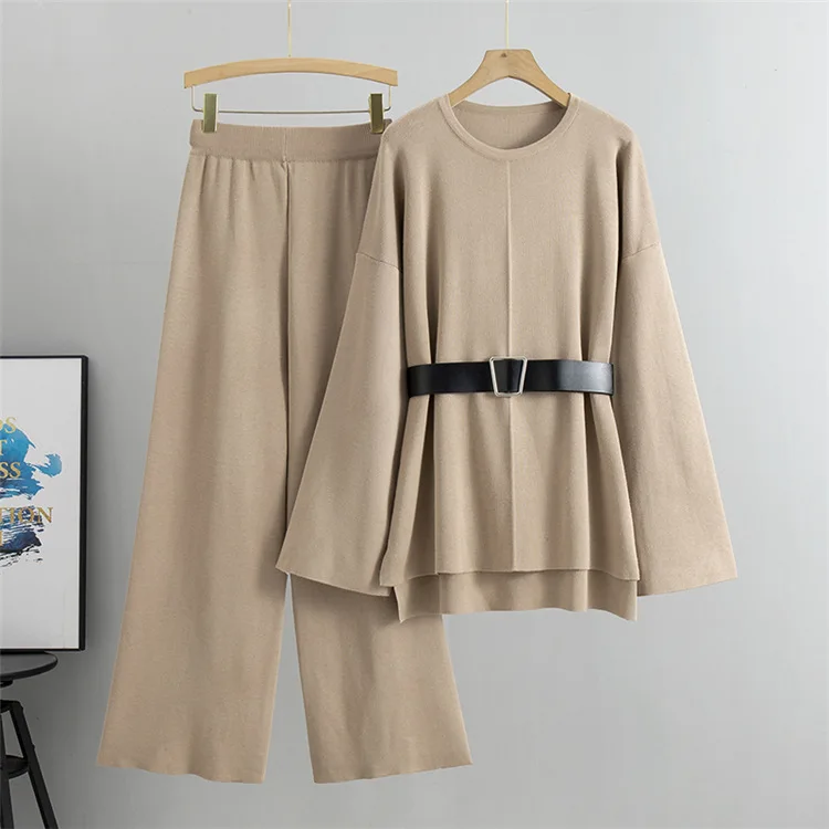 Spring and Autumn Solid Color Knit Pullover Set Casual Elegant Knit Sweater and Pants Set Knitted Two Piece Set for Women