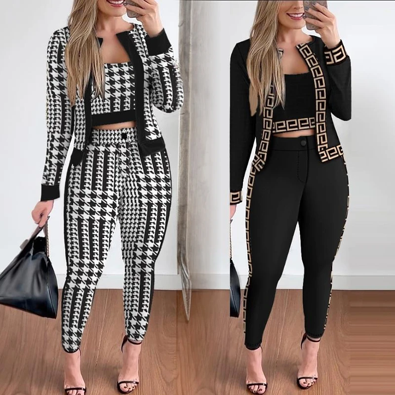 Spring Fall Street Trendsetter Women Clothing Ladies tank Crop Top Cardigan Coat Tight Pants Three Piece Women’s Sets