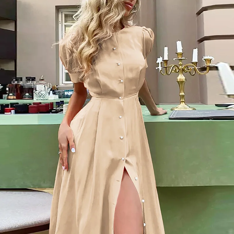 Spring Fall Women’s Clothes Ladies Elegant Temperament Dress Commuting High Waist Solid Color Fashion Casual Women Dresses