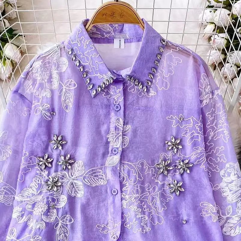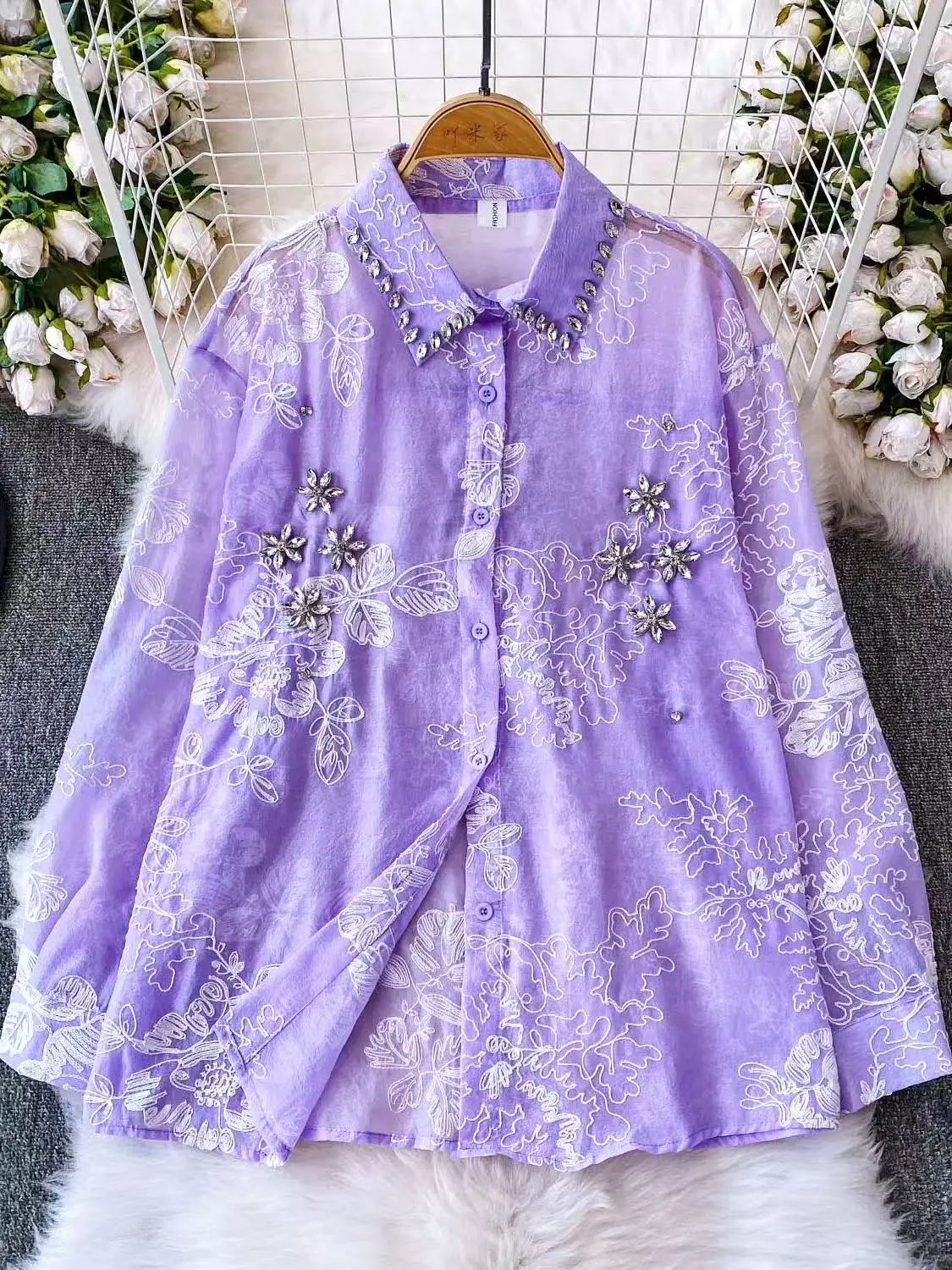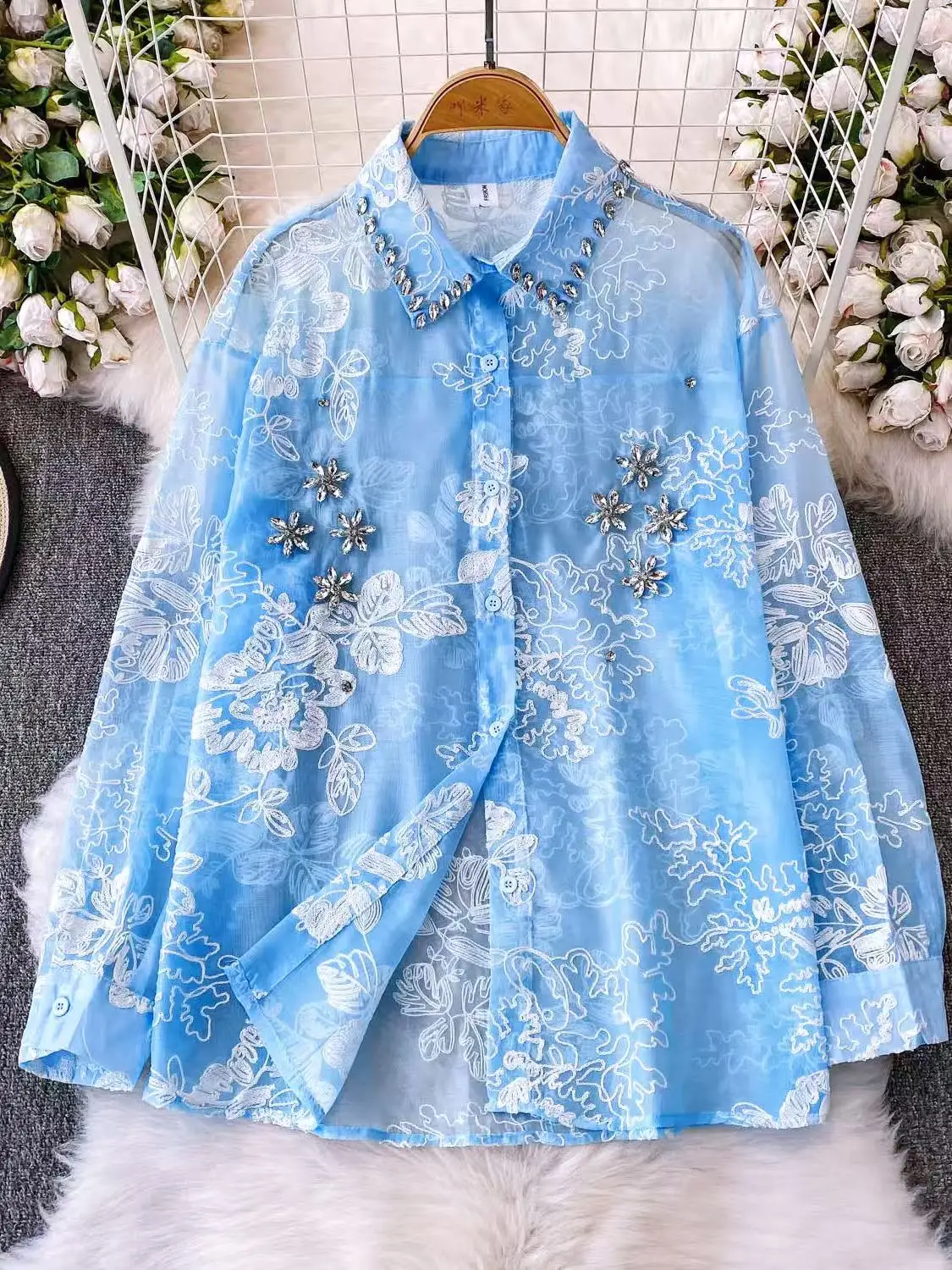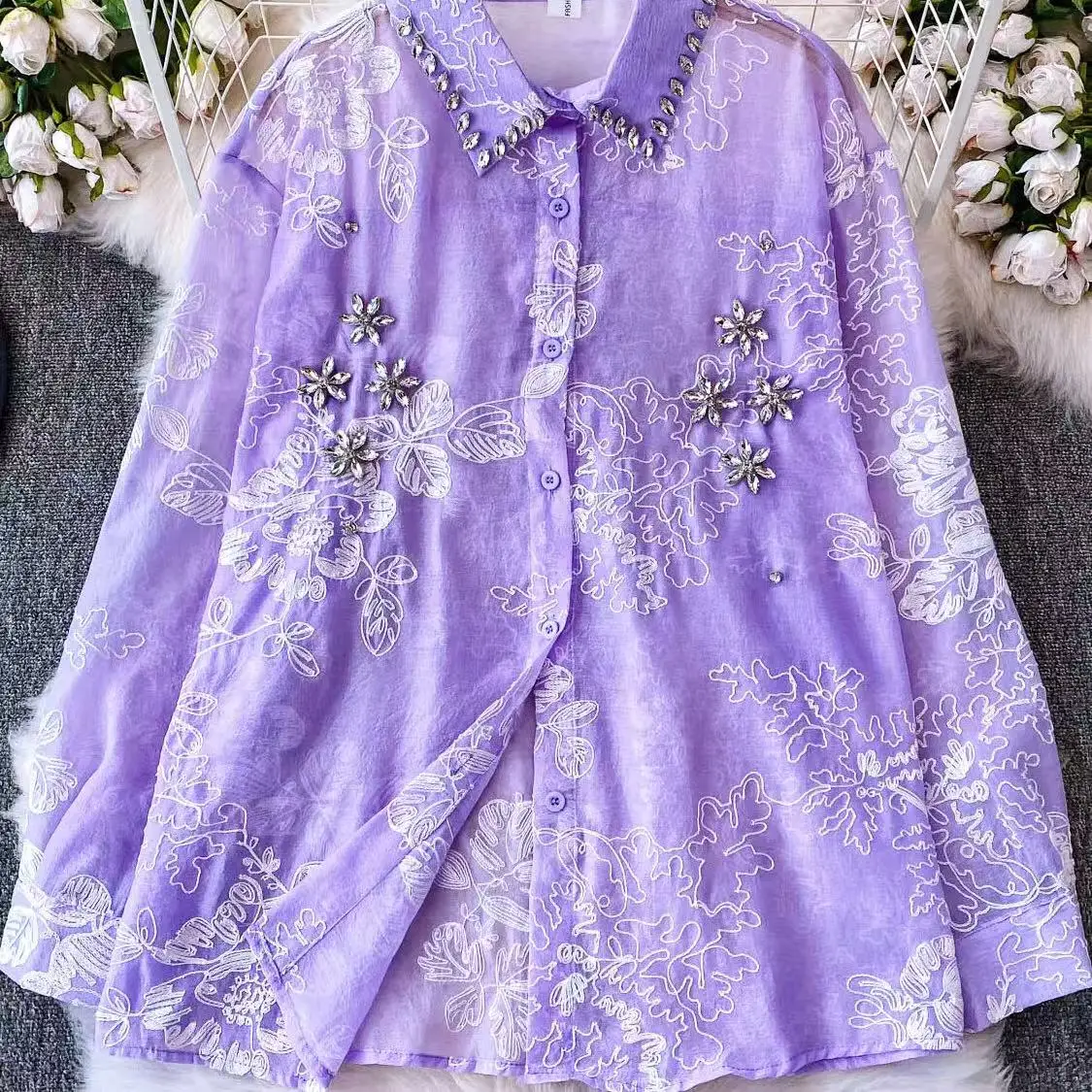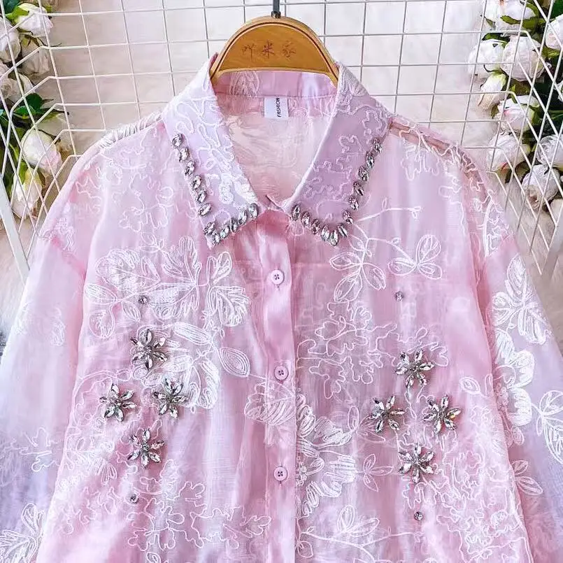 Summer Autumn Full Sleeve Casual Mesh Embroidery Blouses Women’s Shirts Ladies Sexy Tops Clothes Women Wholesale