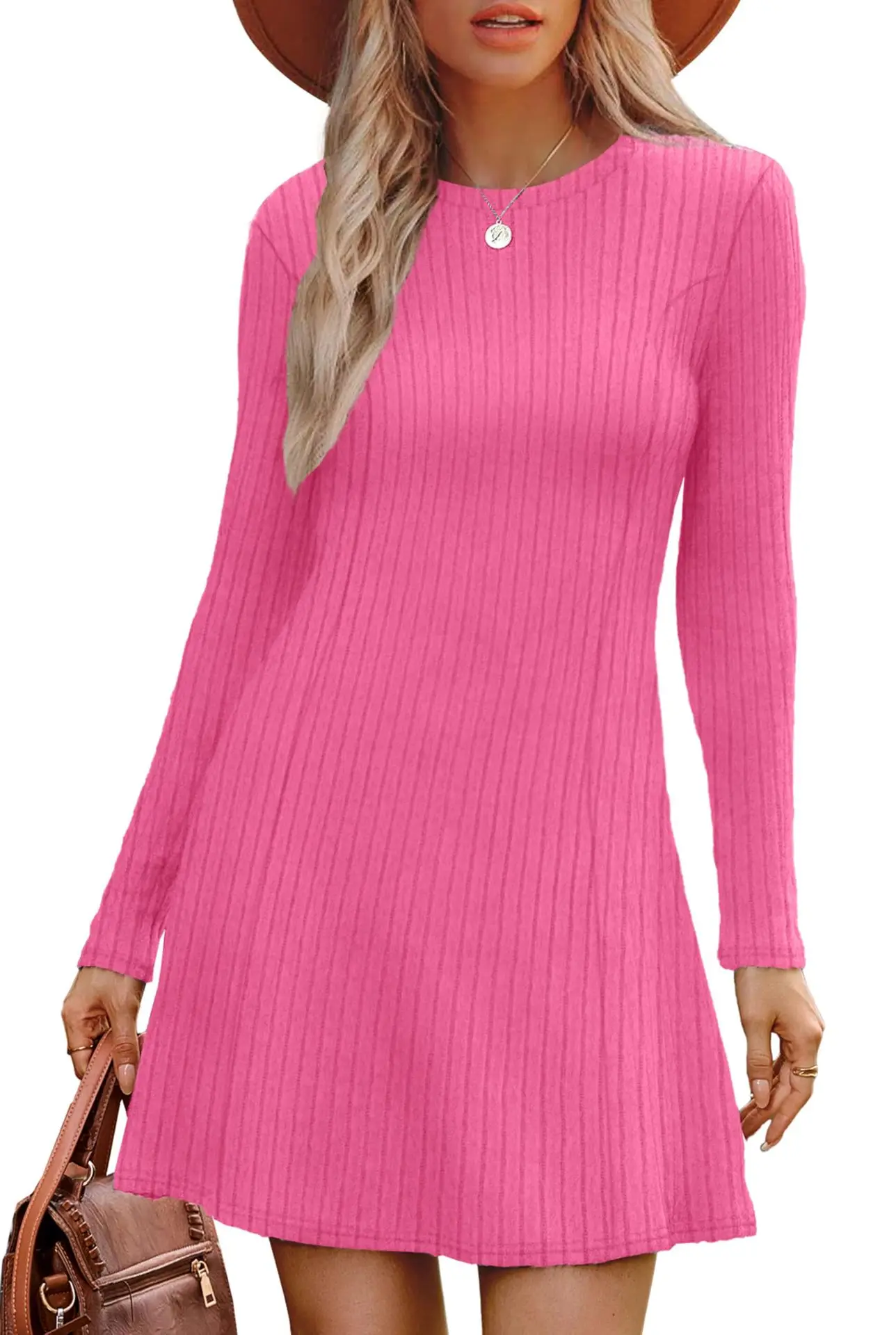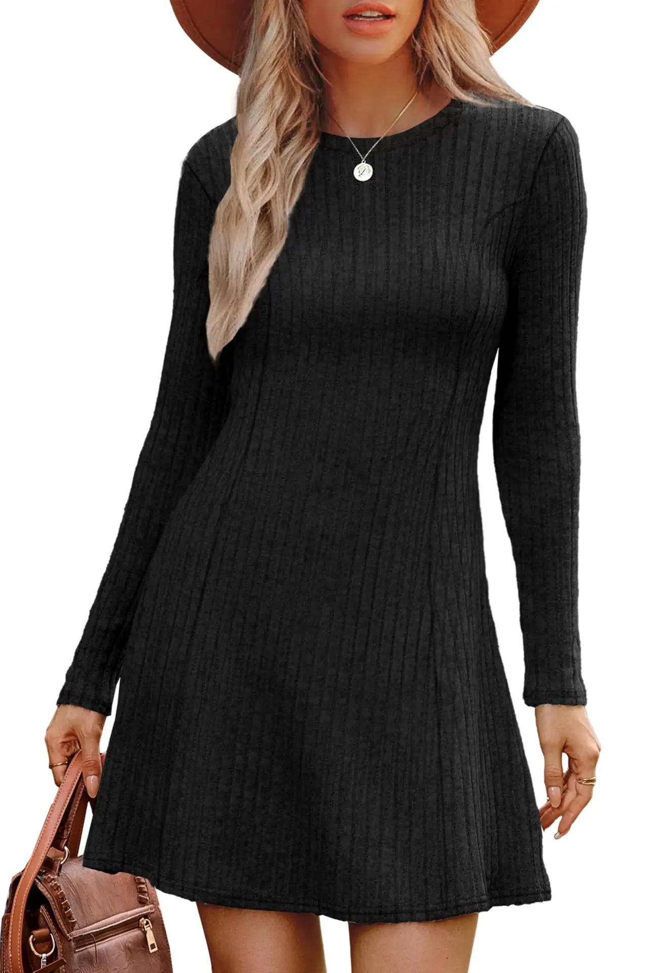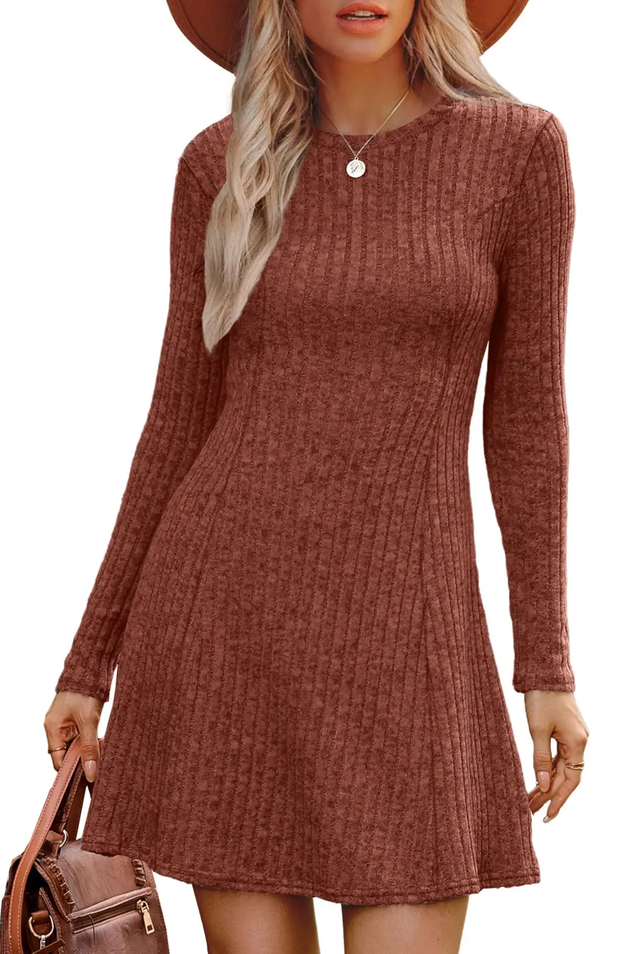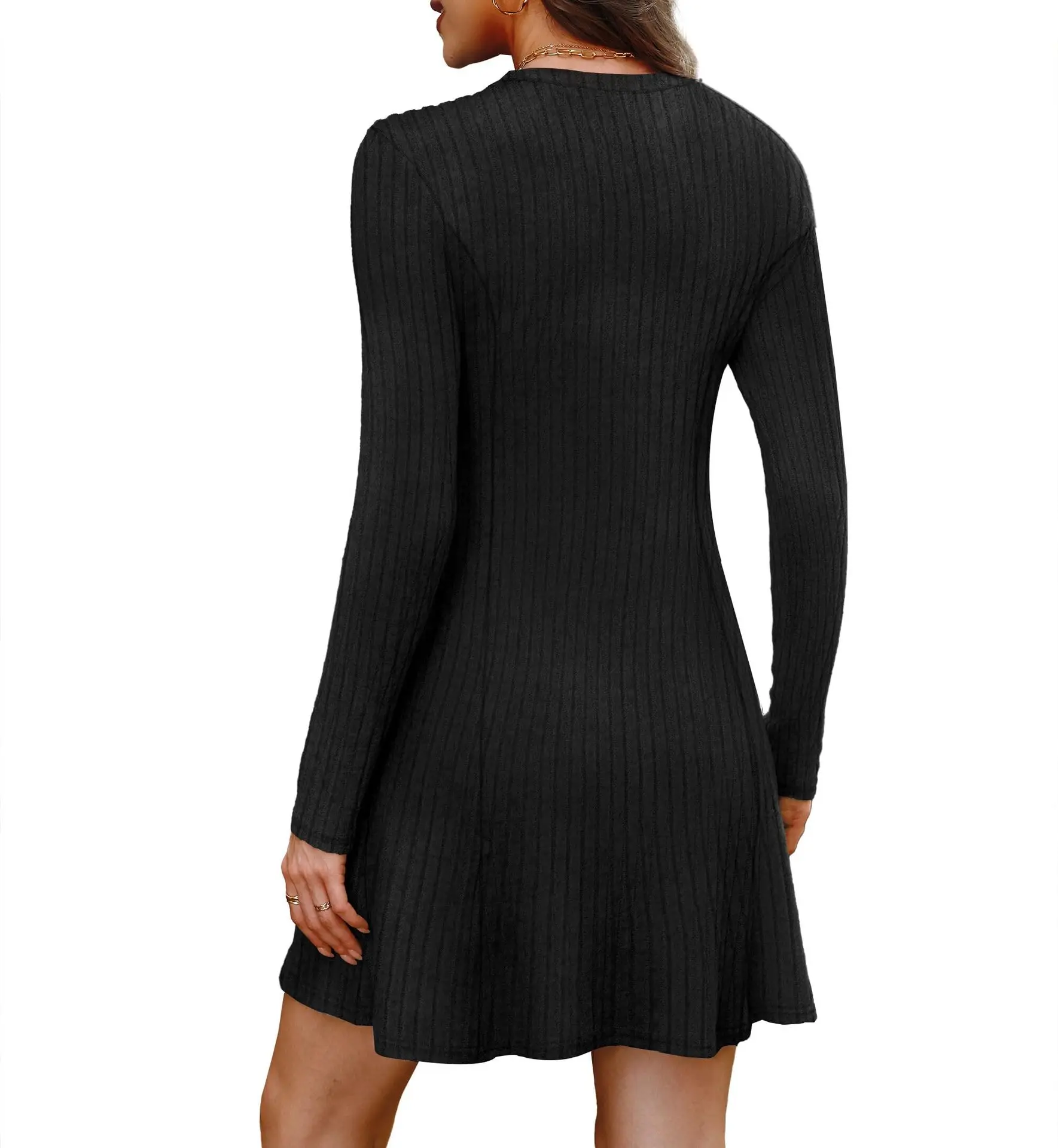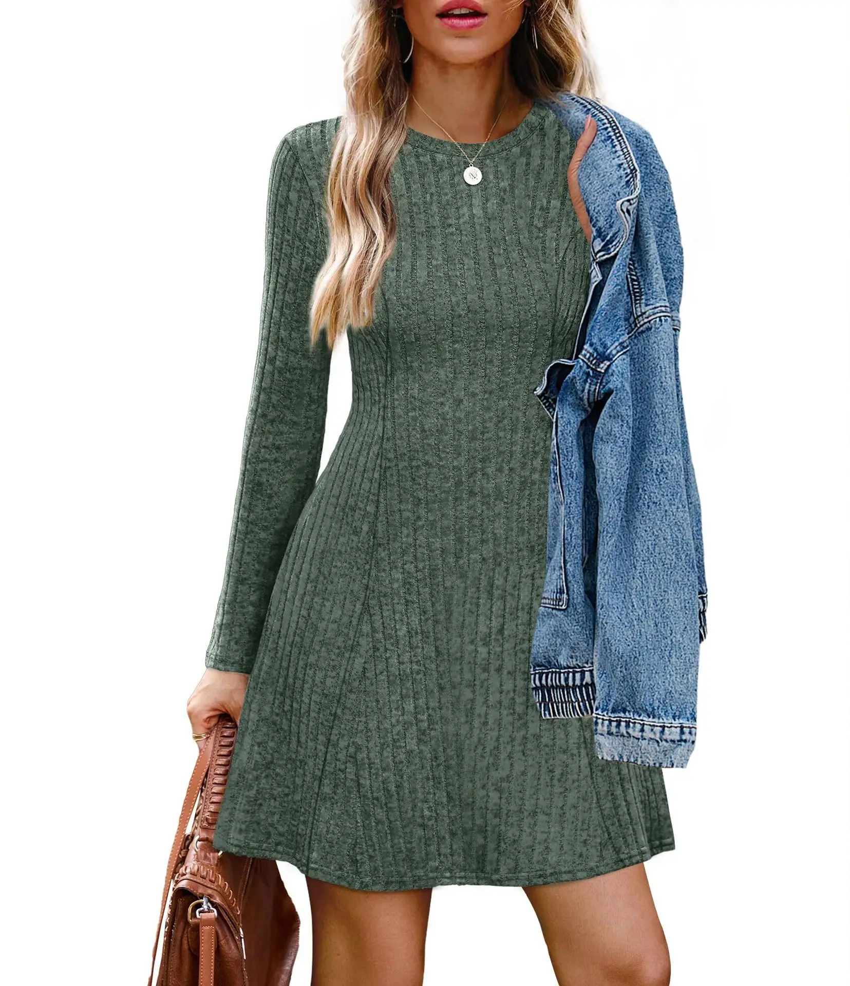 Wholesale Autumn Women’s Bodycon Midi Dress Long Sleeve Ribbed Knit Cozy Solid Pattern