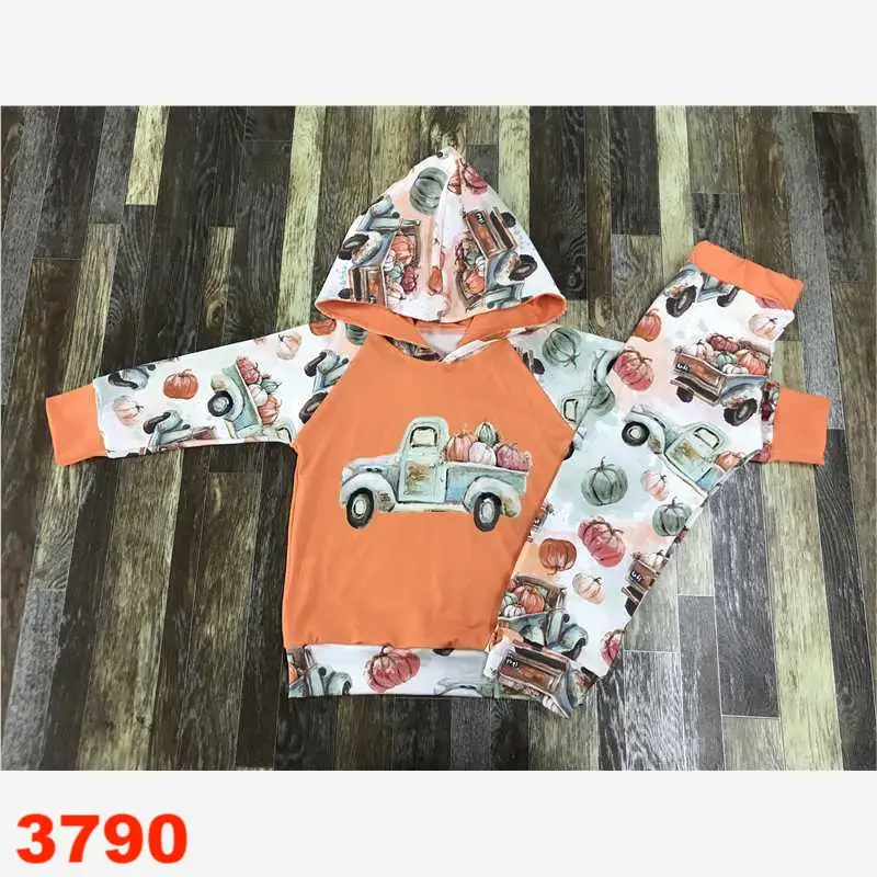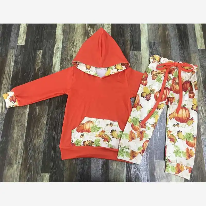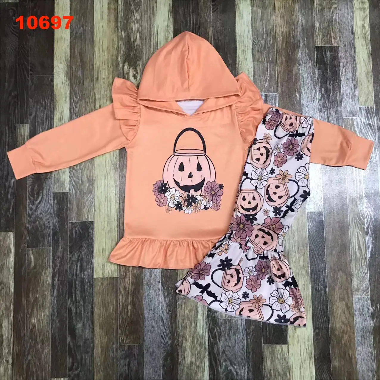 Wholesale Baby Girls Clothes Halloween Pumpkin Smiling Face Hoodie Set Halloween Party Outfits 2pcs Long Sleeve Autumn Wear