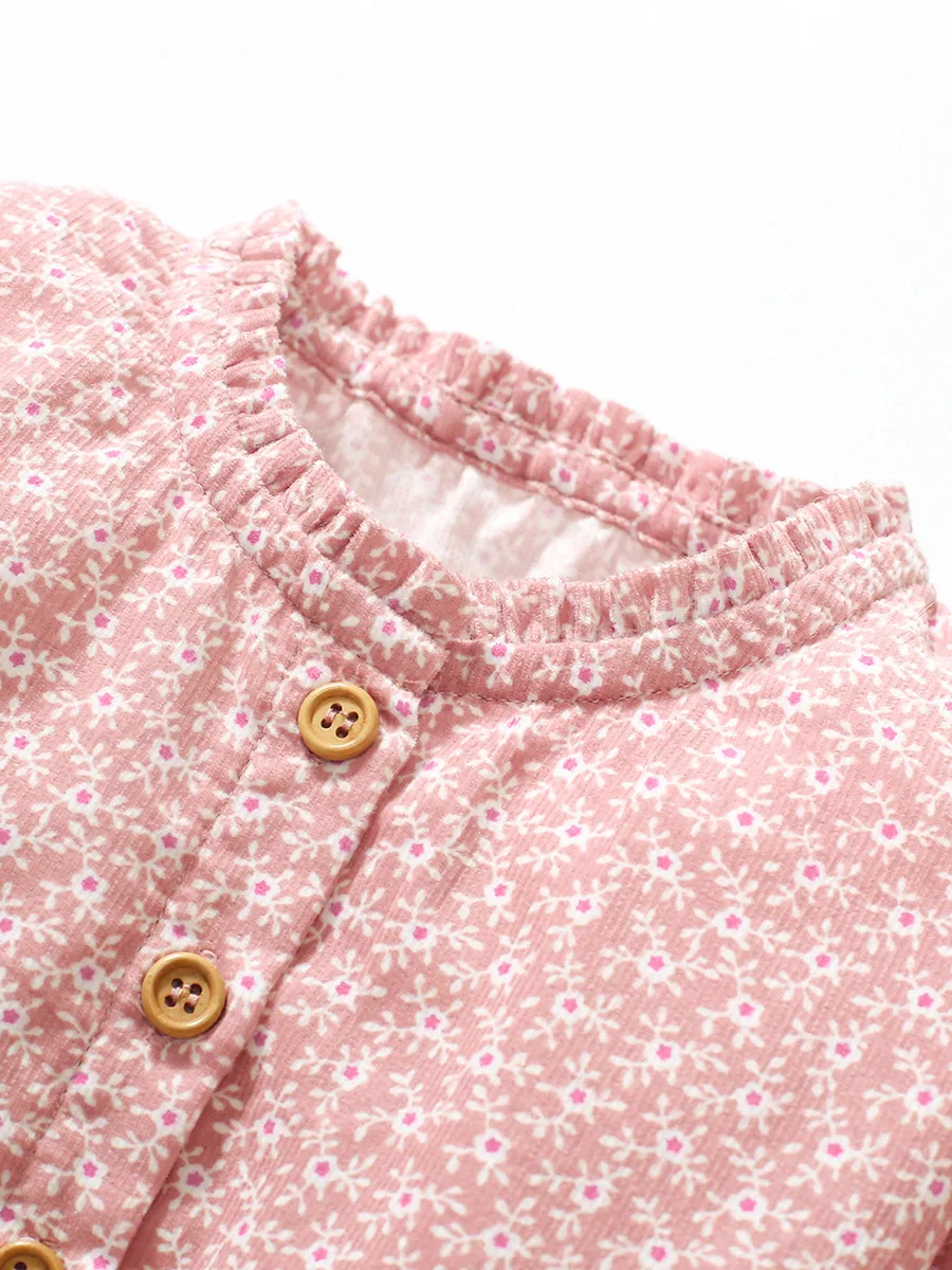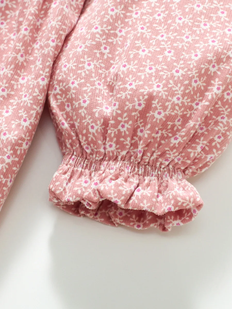 Wholesale Children’s Clothing Girls Cotton Floral Lace-Up Long Sleeve Dress Optimal for Spring and Autumn