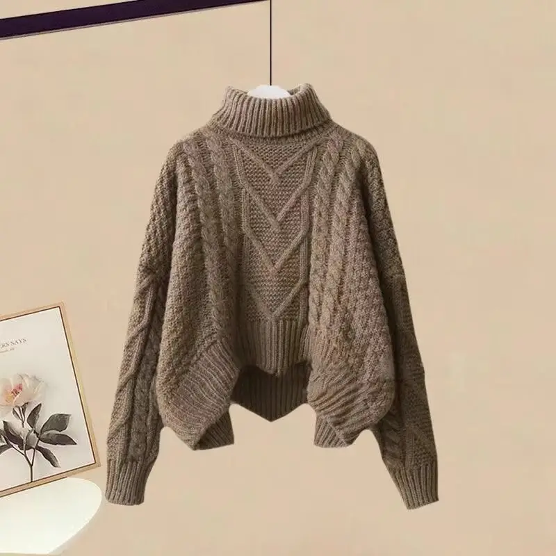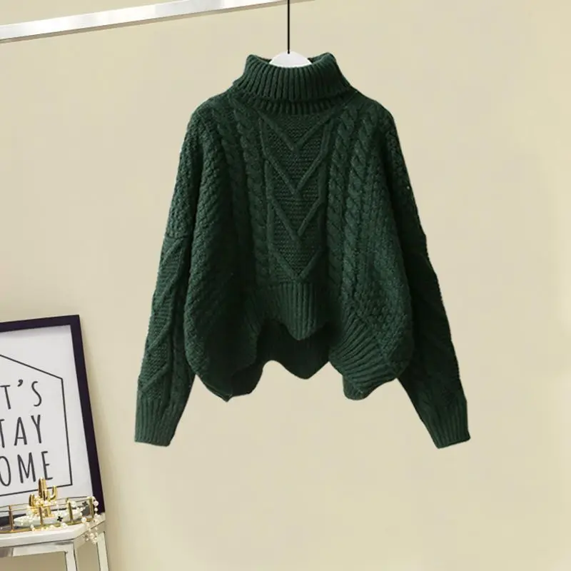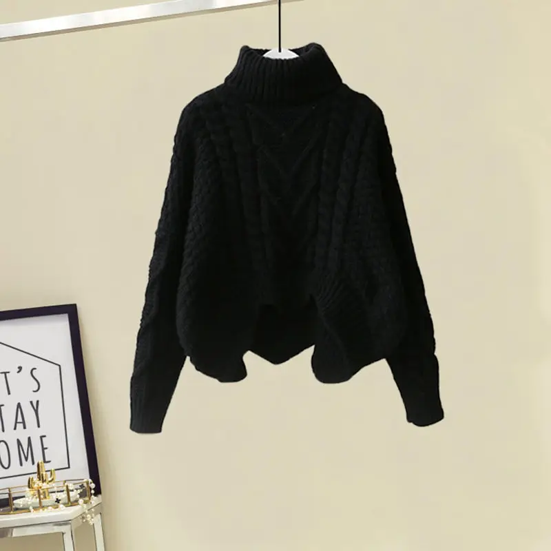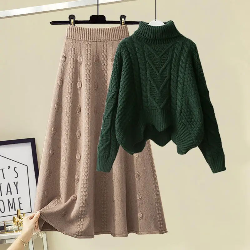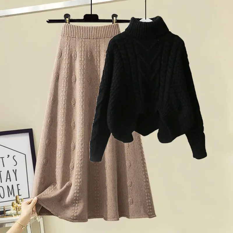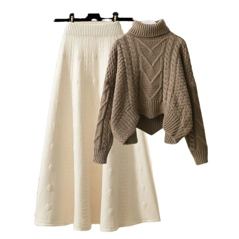 Wholesale Knit Autumn Set Turtle-neck Solid Color Sweater and Loose Skirt Knit Two-piece Set for Women