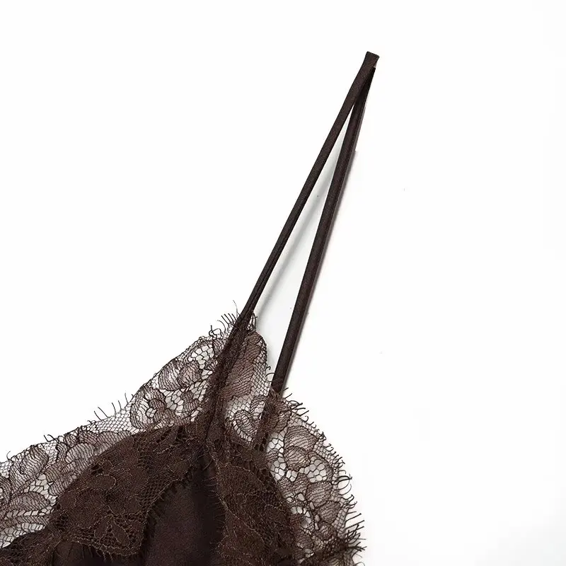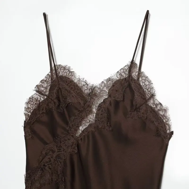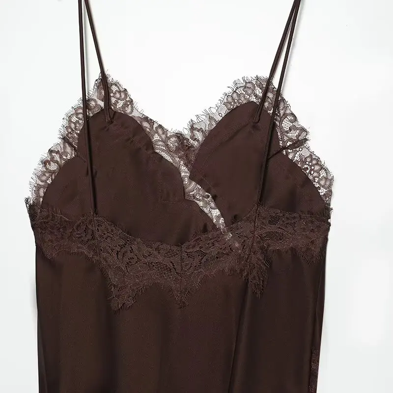 Women 2025 Autumn New Chic Fashion With Sleeveless Lace Asymmetry Mini Dress Vintage Backless Thin Straps Female Dresses