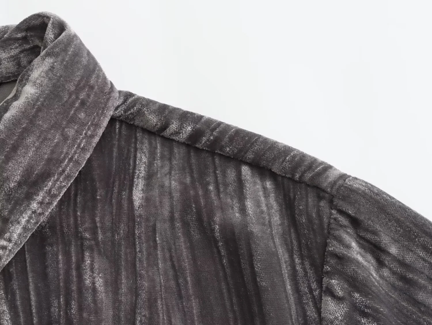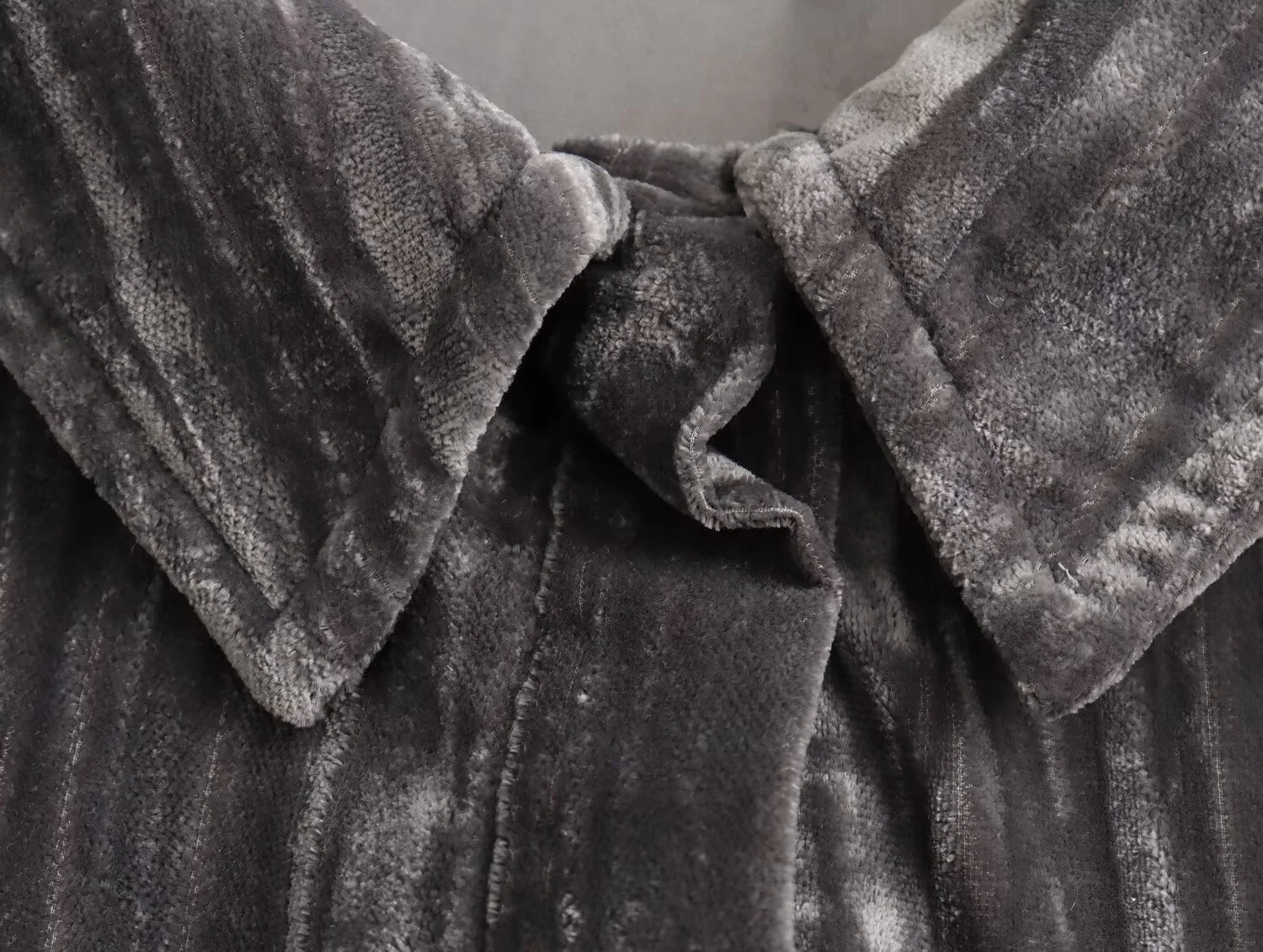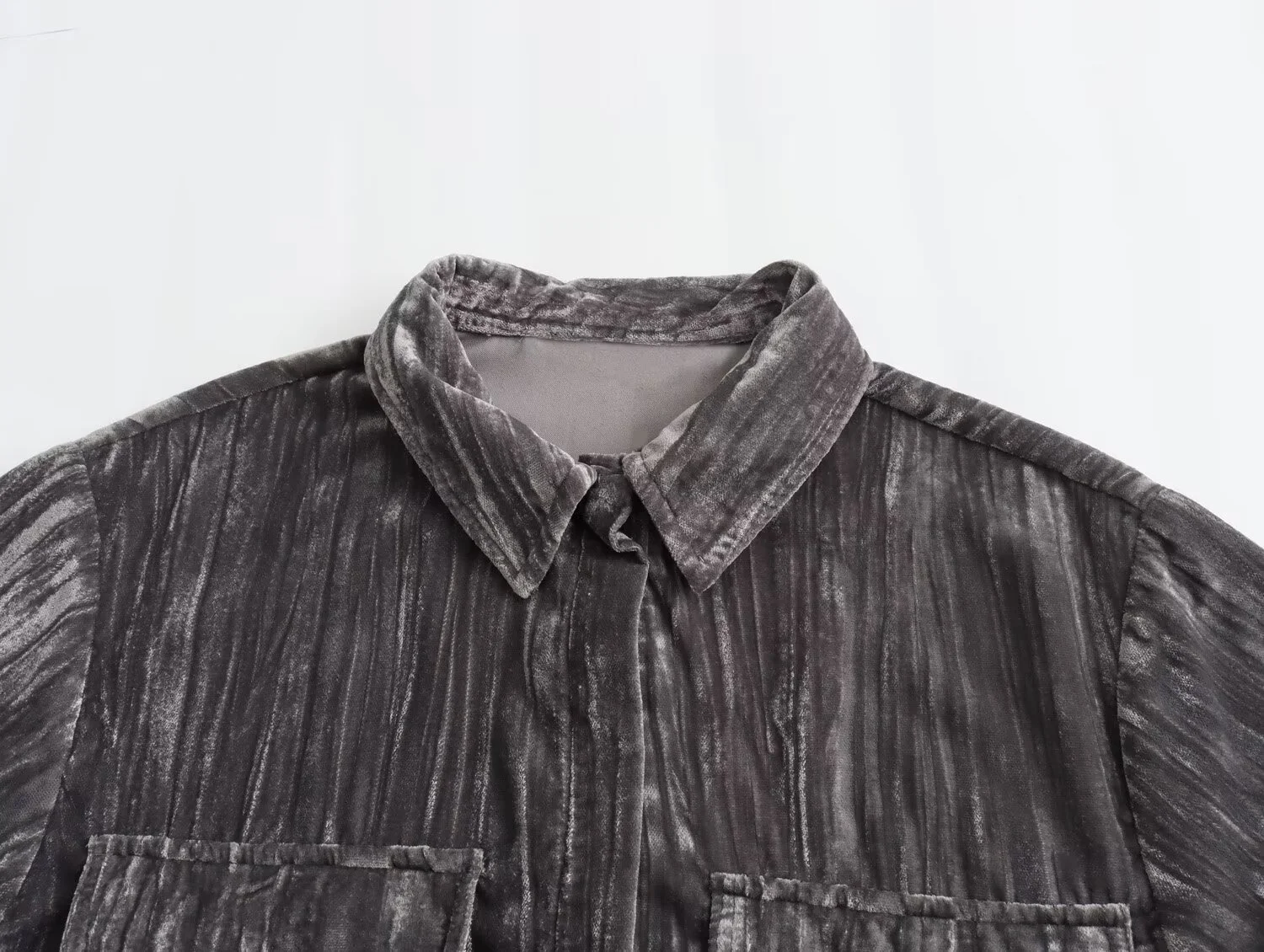 Women 2025 Autumn New Fashion Cropped Velvet Shirt Vintage Long Sleeve Button-up Female Shirt + Skirt Chic Suit