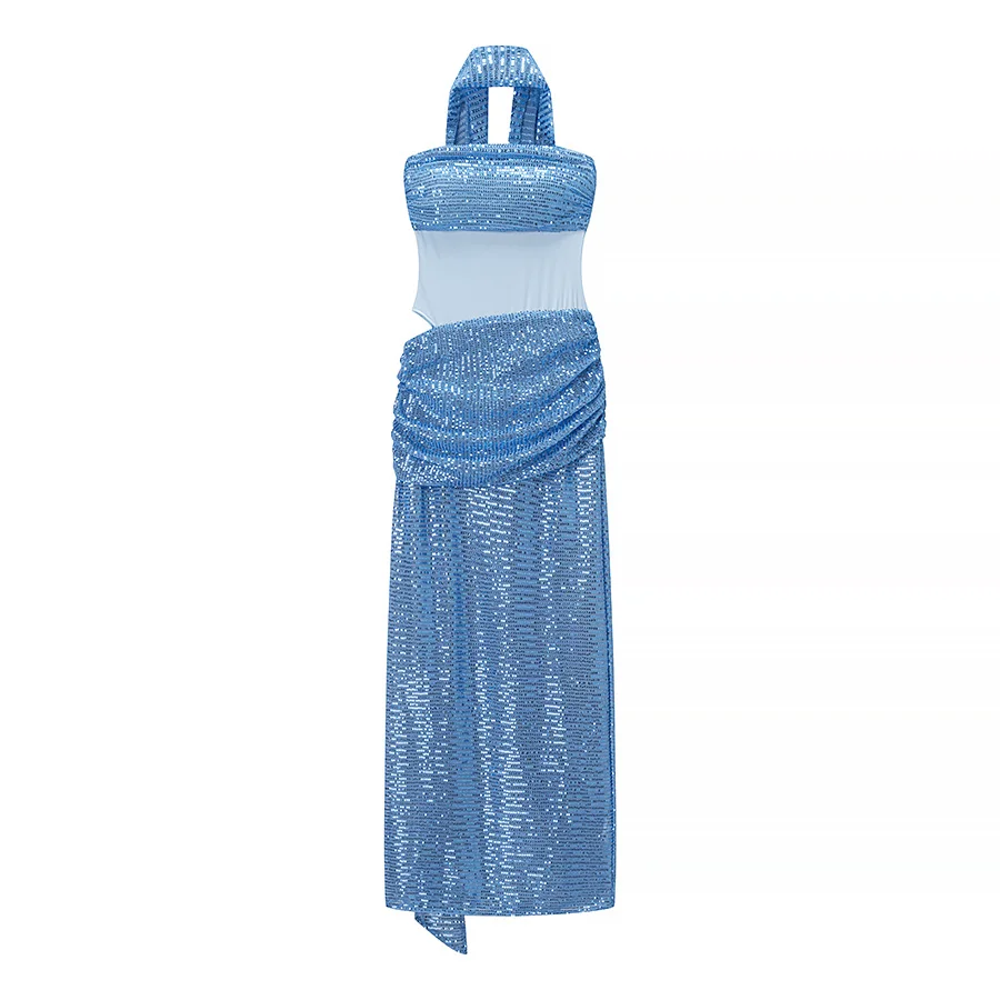 Women 2025 Autumn New Fashion Sequined Strap Sleeveless Strapless Dress Vintage Backless Casual Female Dresses Vestidos Mujer