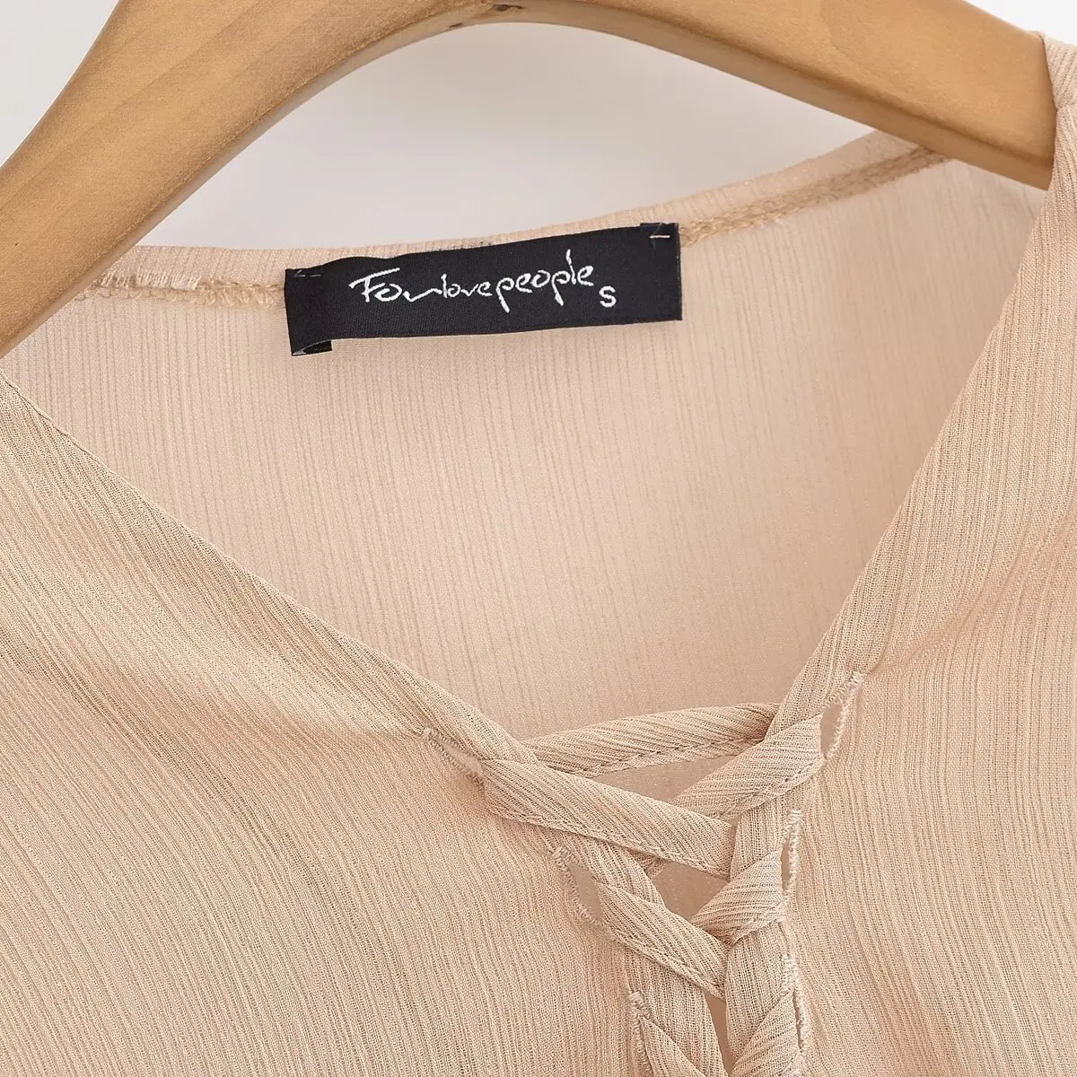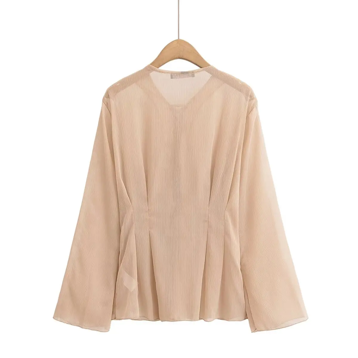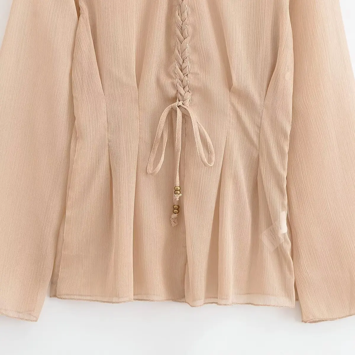 Women’s autumn 2025 new casual fashion temperament strap waist shirt retro women’s chic flared sleeve shirt.