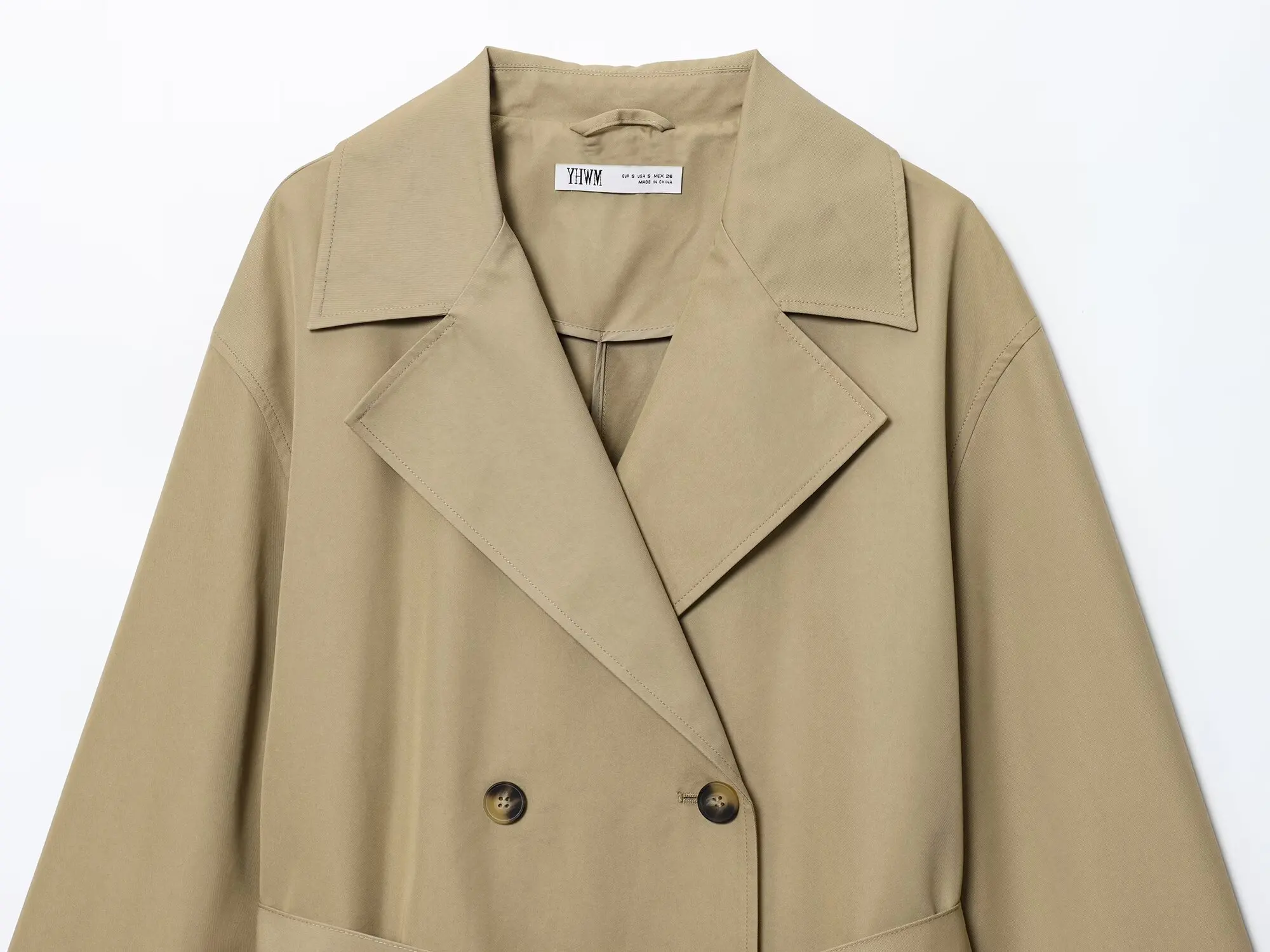 Women’s clothing 2025 new casual fashion belt decoration long trench coat retro women’s chic long-sleeved trench coat