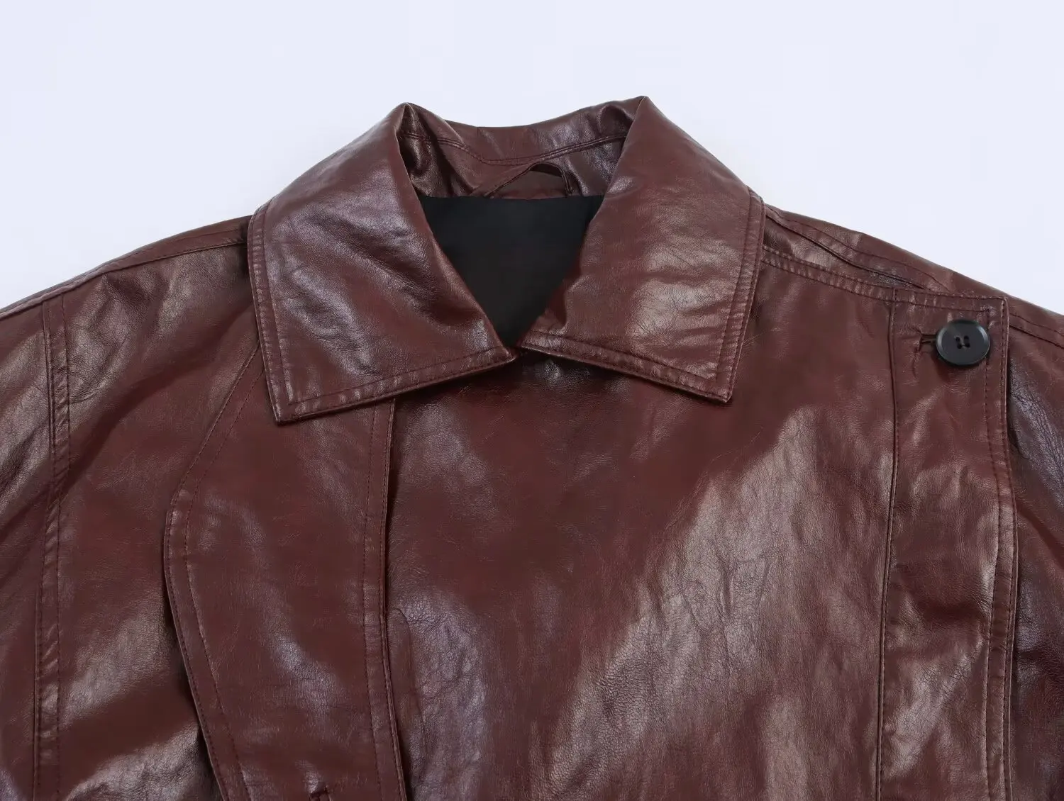 Women’s clothing fall/winter 2025 new fashion casual artificial leather lapel breasted coat retro women’s long sleeve coat.