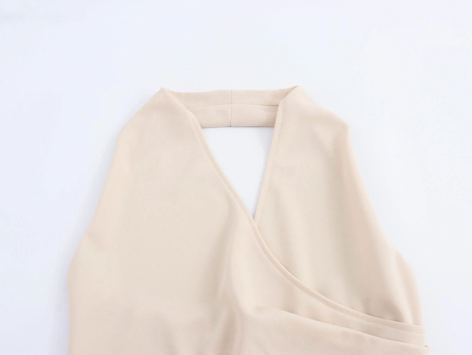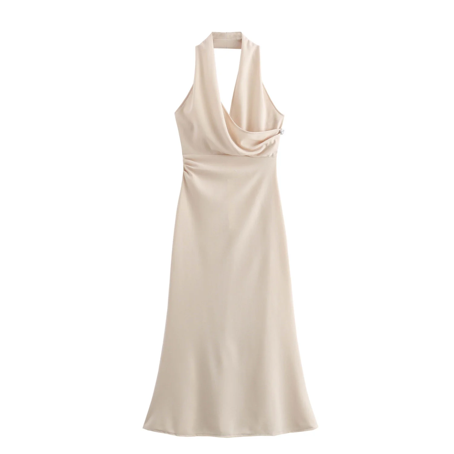 Women’s Early Autumn 2025 Long Midi Dress New Halter Neck Sleeveless Wool Vestidos with Natural Waistline