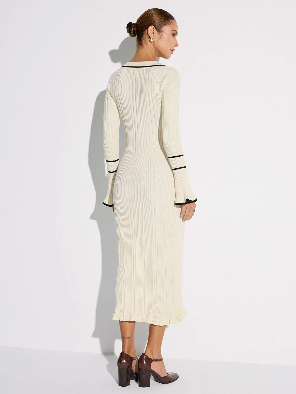 Women’s Elegant Double-Layer Knitted Dress Ruffled Skirt Slim Fit Maxi Length-for Autumn Season Solid Pattern-Wholesale Clothing