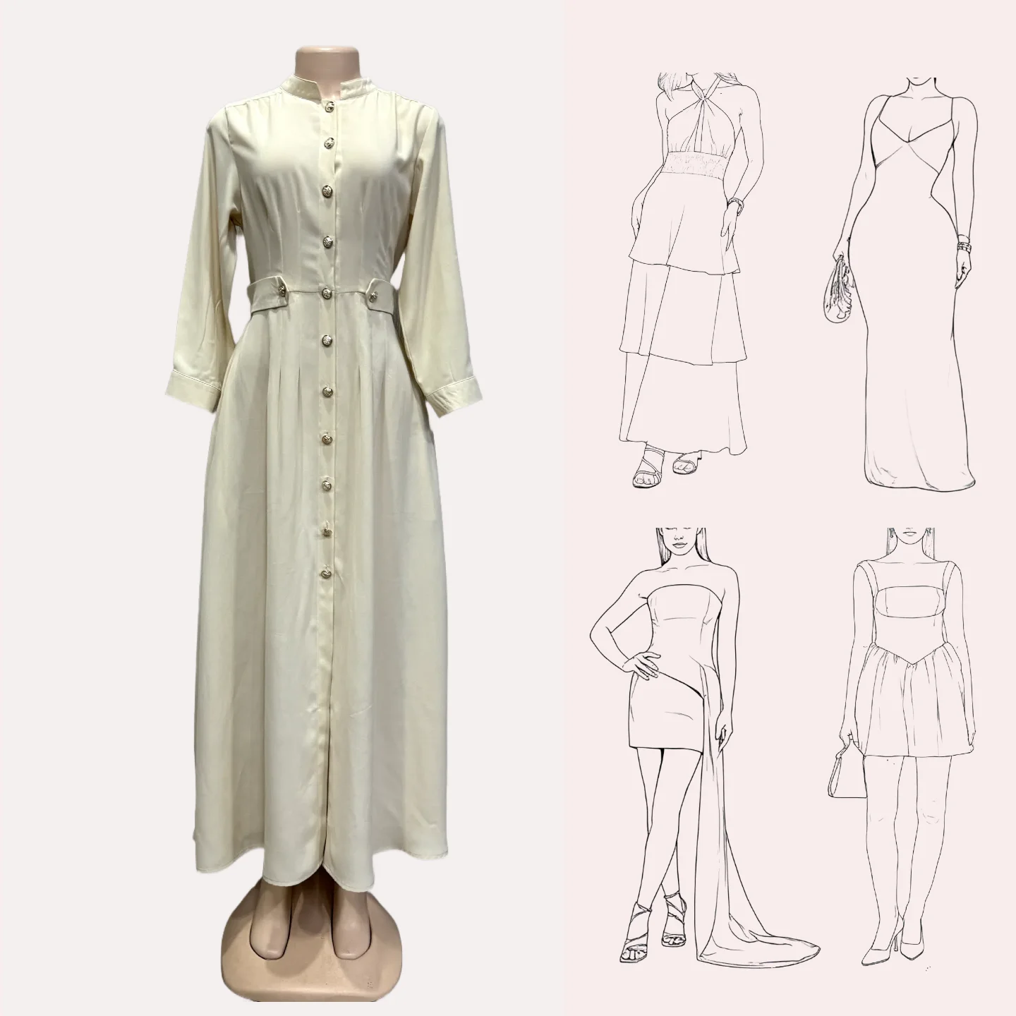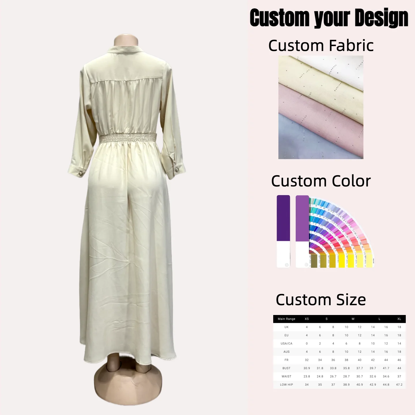 Be the first to review “Women’s Elegant Solid Pattern Maxi Dress Button Decor Stand Collar Ruffle Detail Modest Office Lady Style Natural Autumn Dress”