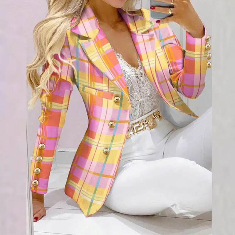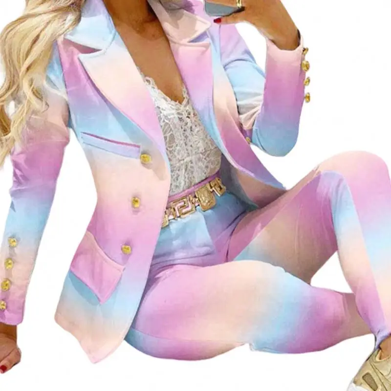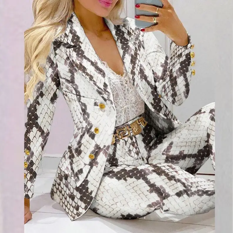 Women’s Formal Two-Piece Set Long Sleeve Blazer Top & Skinny Straight Pants With Button Decoration Autumn Spring Outfit