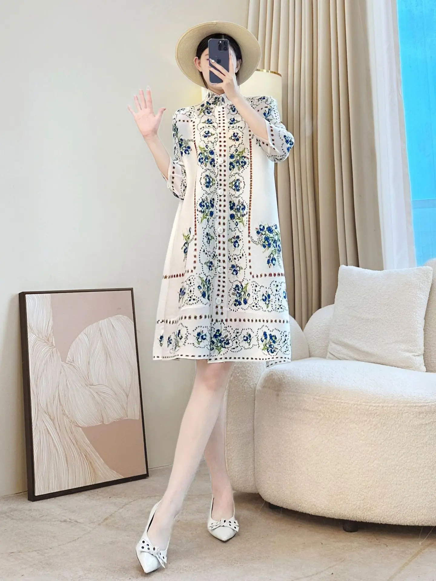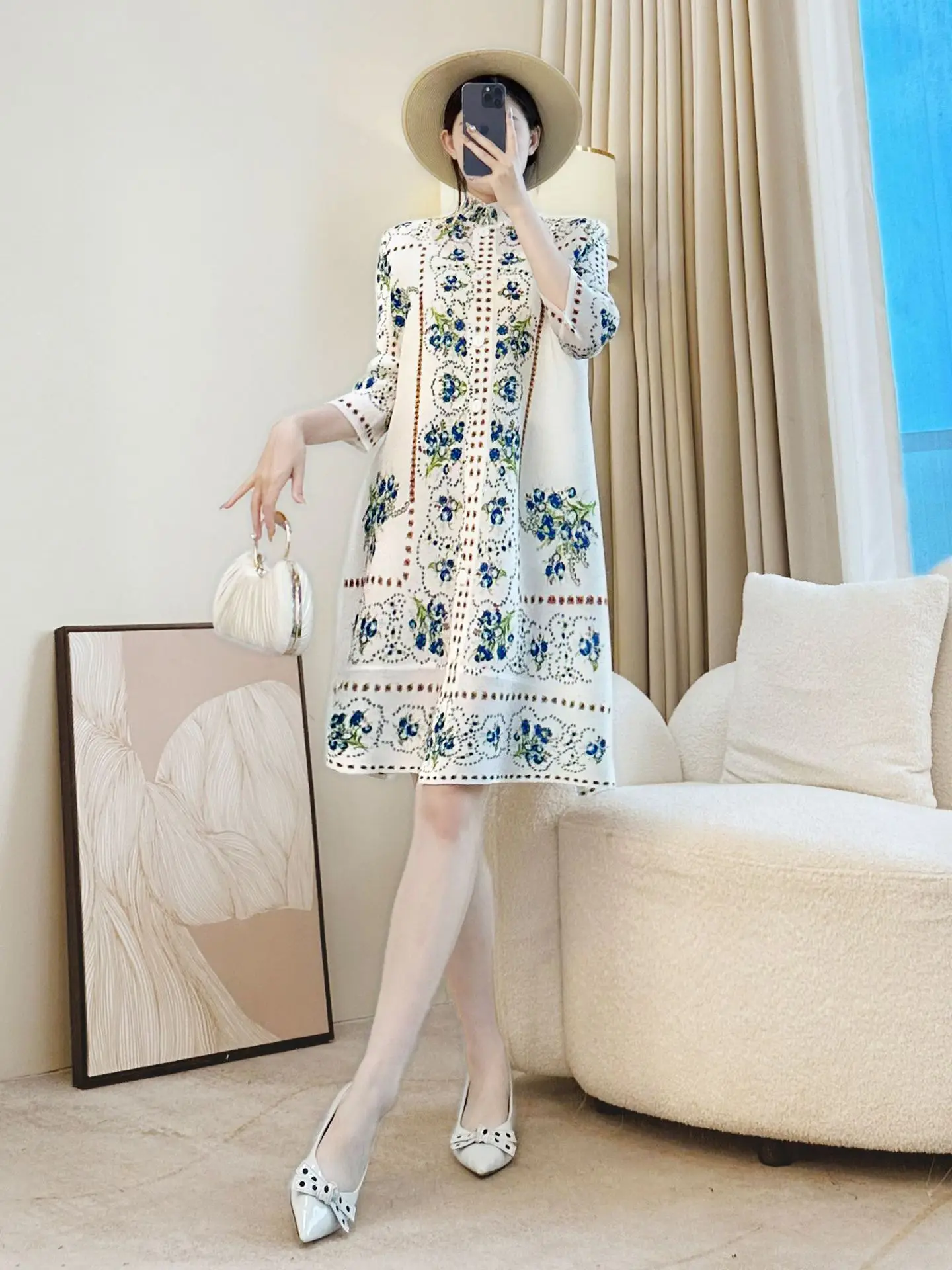 Be the first to review “Women’s High-End Miyake Shaking Spring Skirt Large Size Holiday Printed Dress for Spring Autumn Casual Pleated Design Polyester”