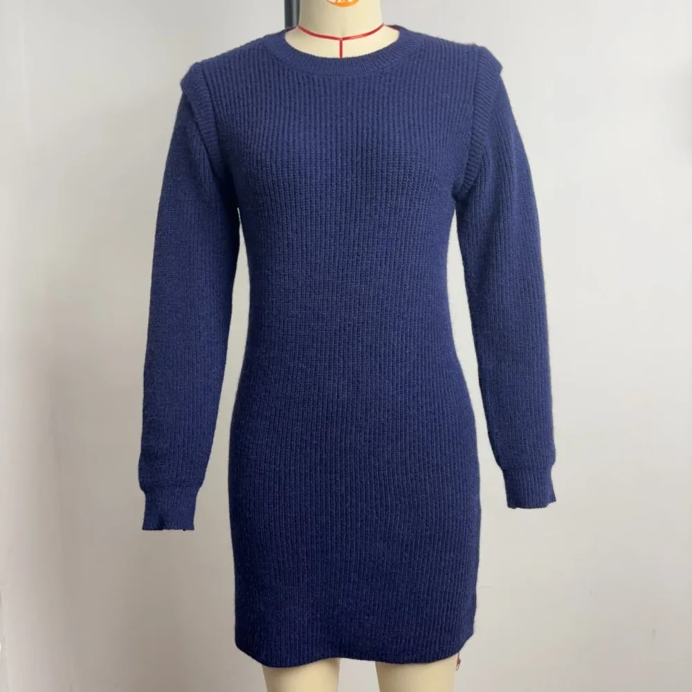 Women’s Knitted Crew Neck Long Sleeve Bodycon Dress Slim Fit Casual Style Solid Pattern for Autumn Wholesale Clothing