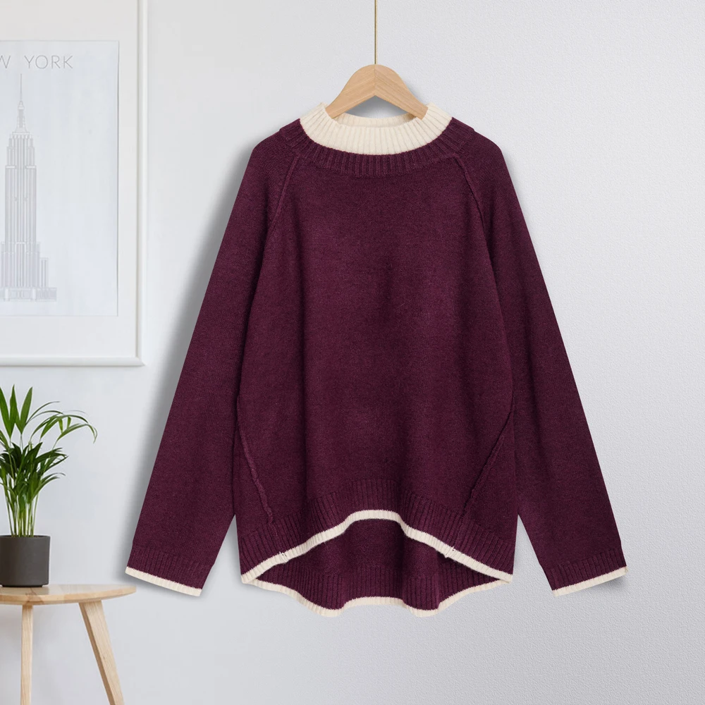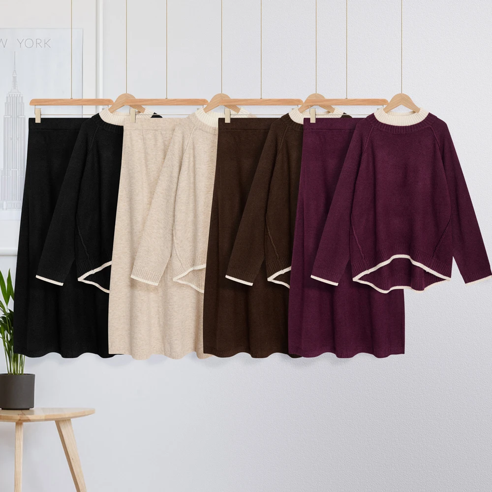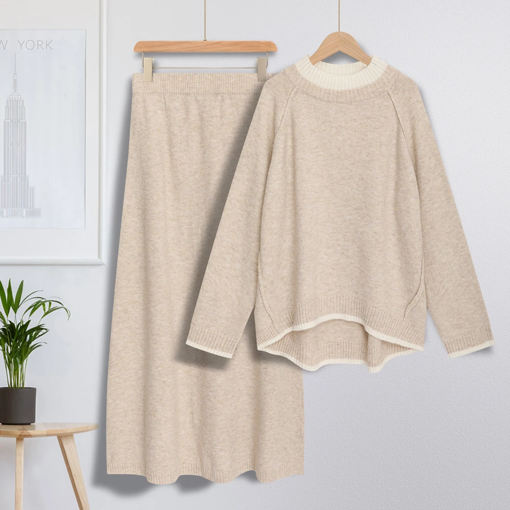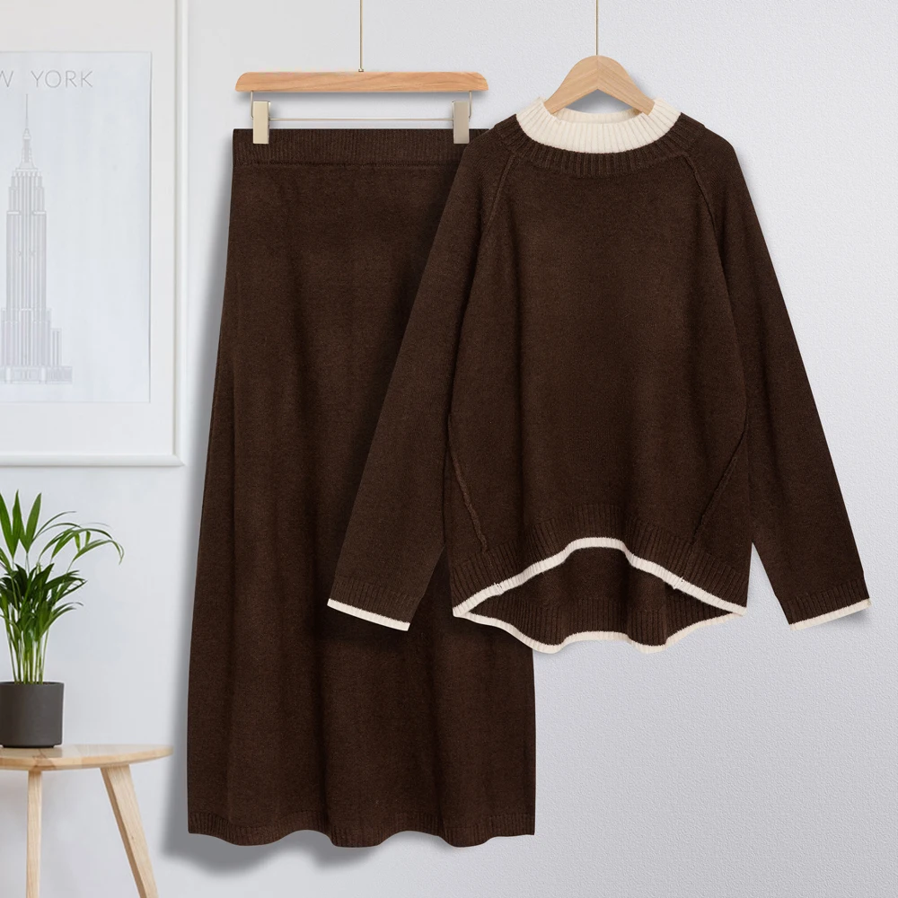 Women’s Knitted Sweater Set Color Contrasting Double Collar Cross Shoulder Two Piece Set Autumn/Winter Large Women’s Wear