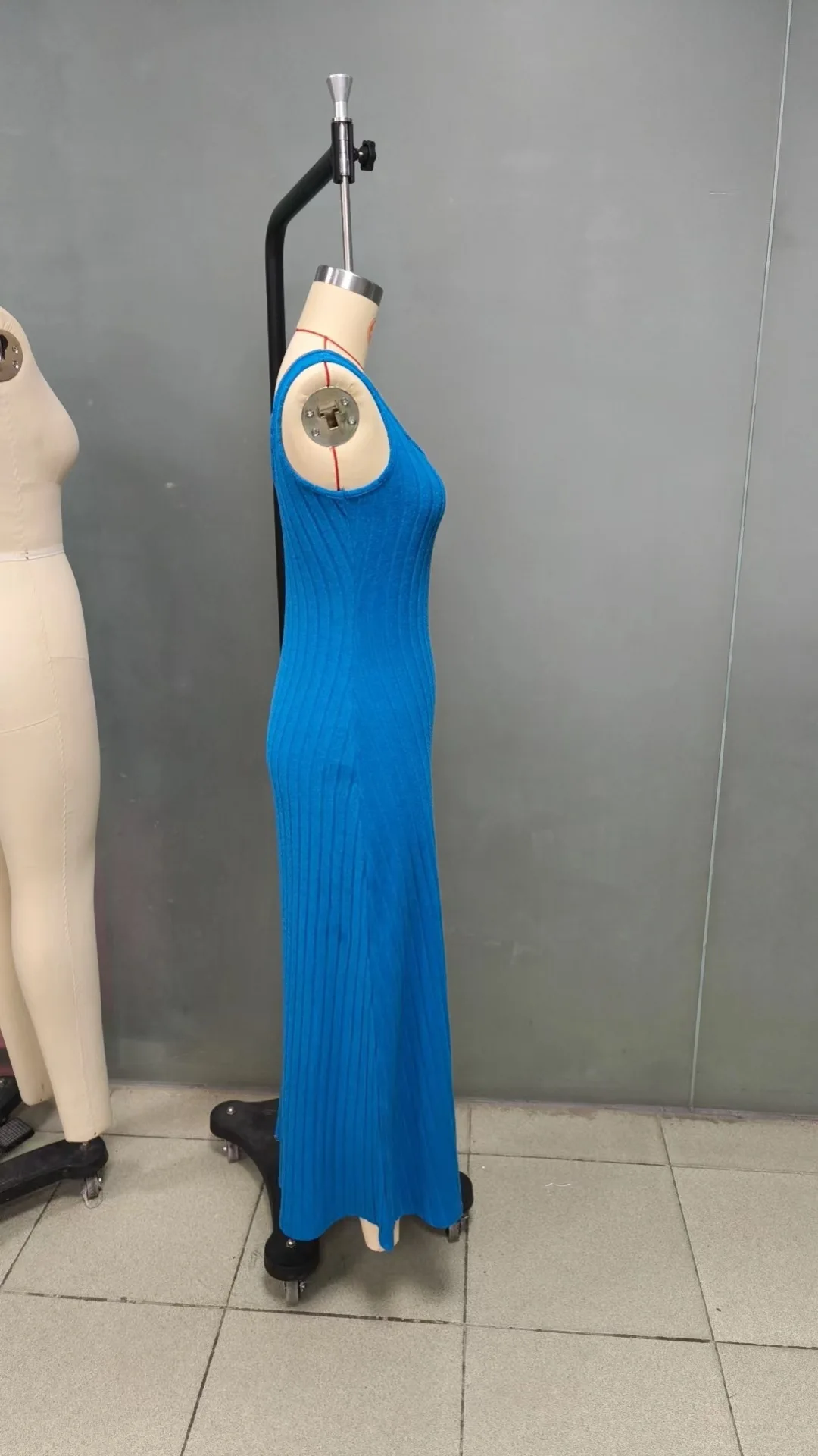 Women’s Natural Waist Ribbed Slip Dress Long Maxi Casual Autumn Knitted Wholesale Clothing