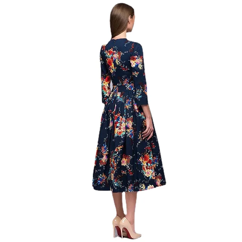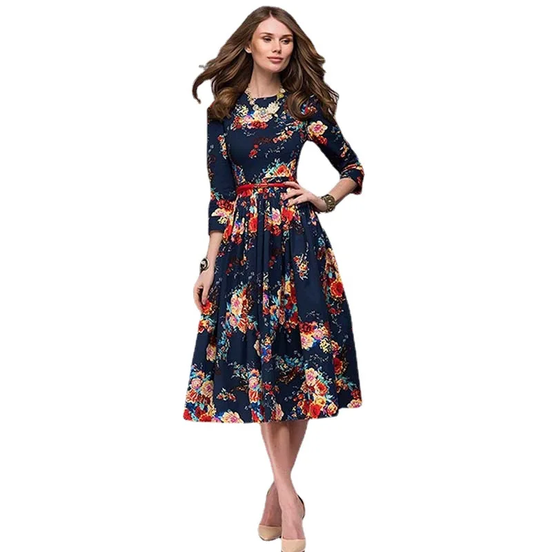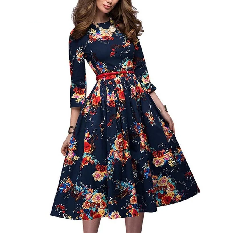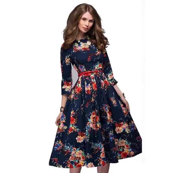 Women’s Retro Long Sleeve Satin Dress Autumn Slimming Wholesome Temperament Puffy Dress Casual Foreign Trade