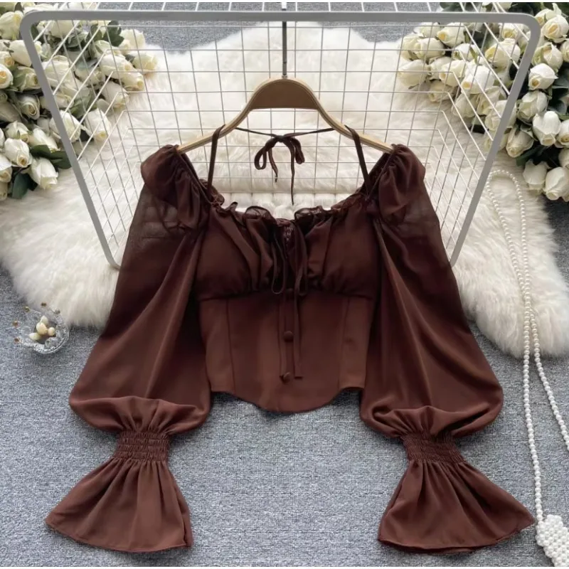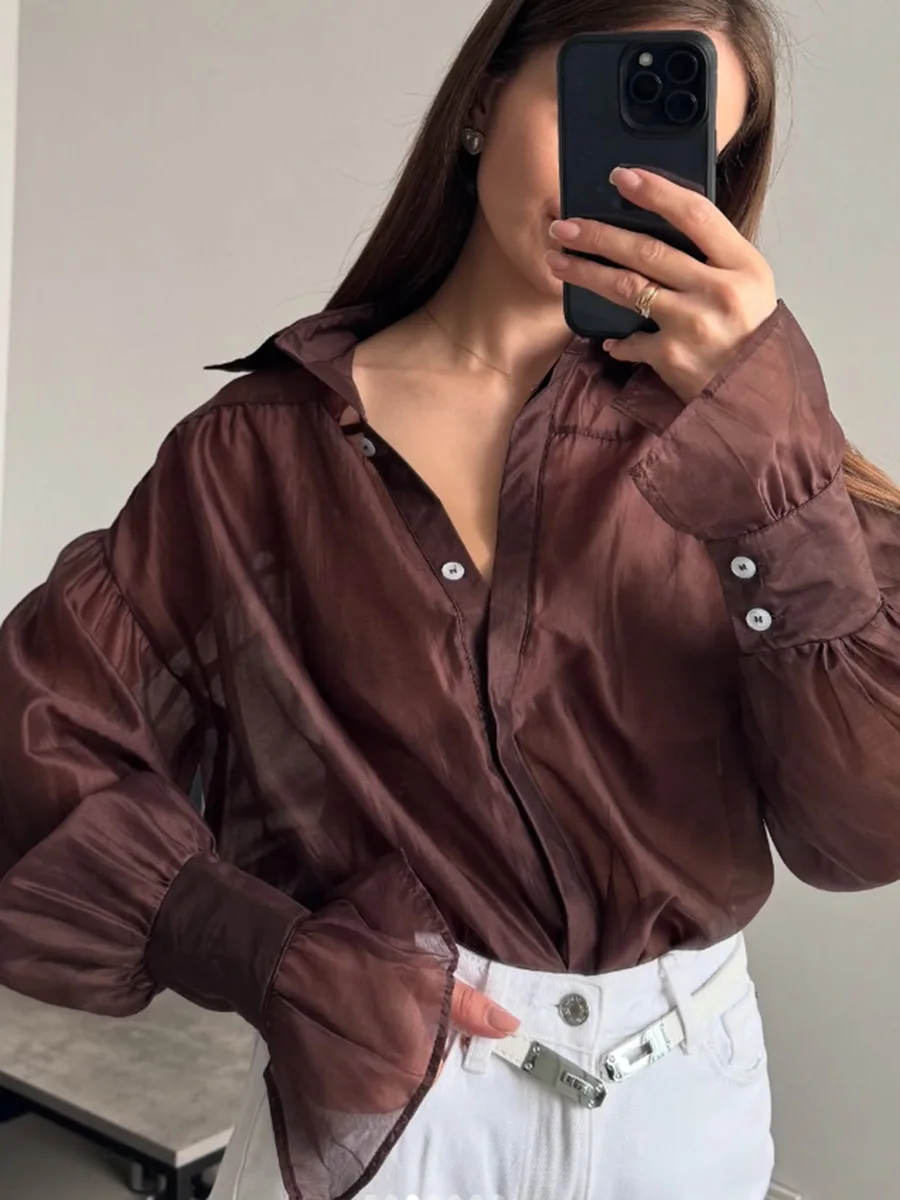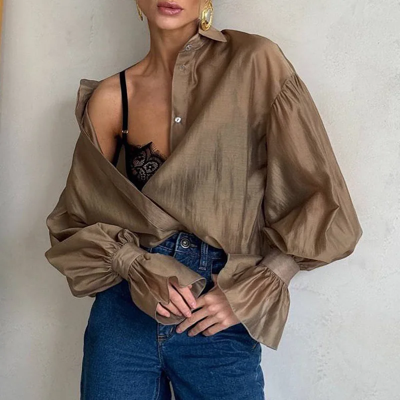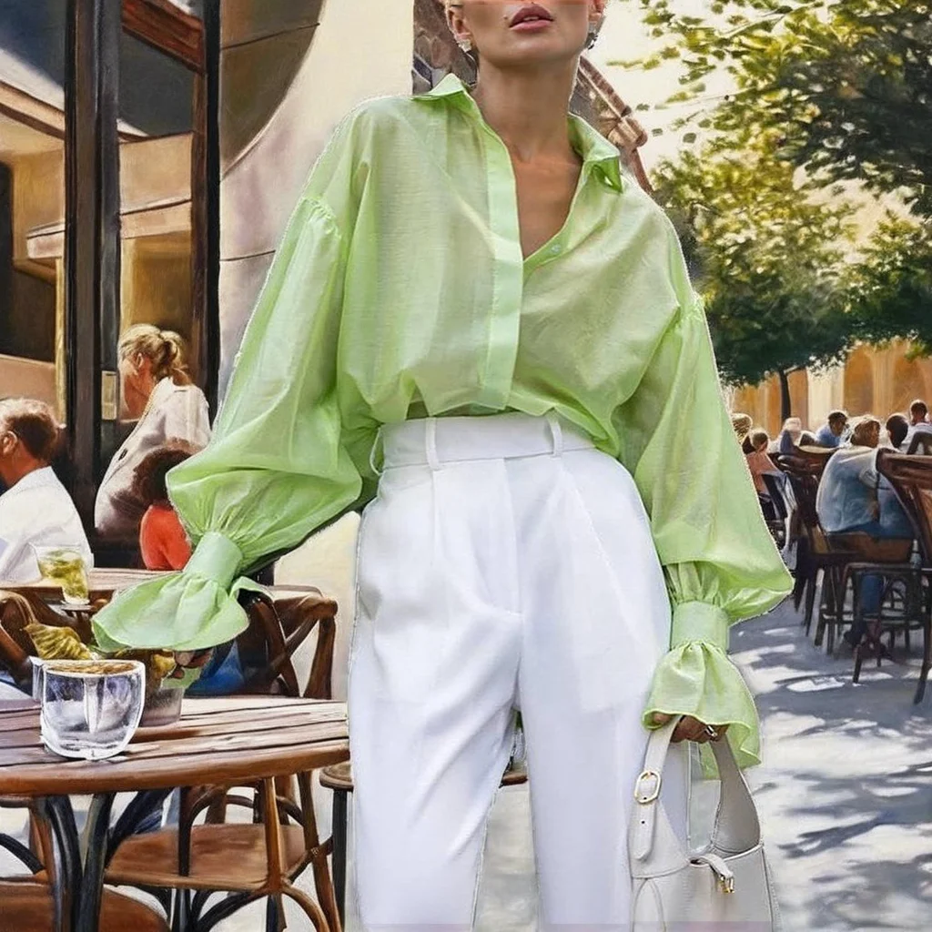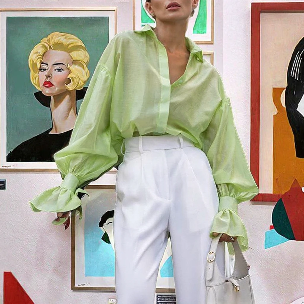 Women’s Trendy Long Sleeve Lace-up Blouse Slimming Solid Color Shirt Casual Style for Summer Autumn Spring