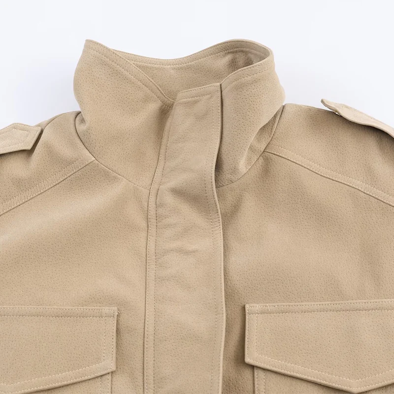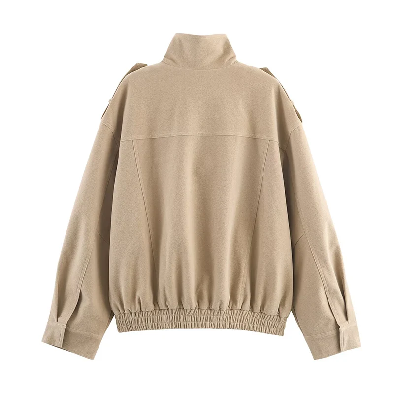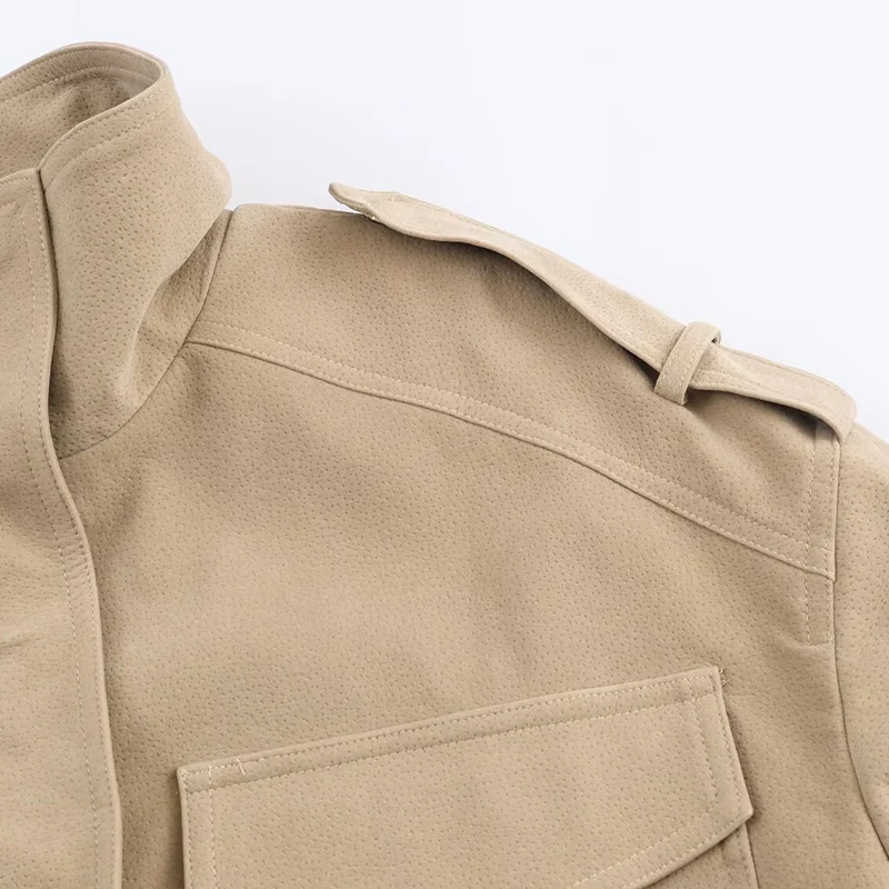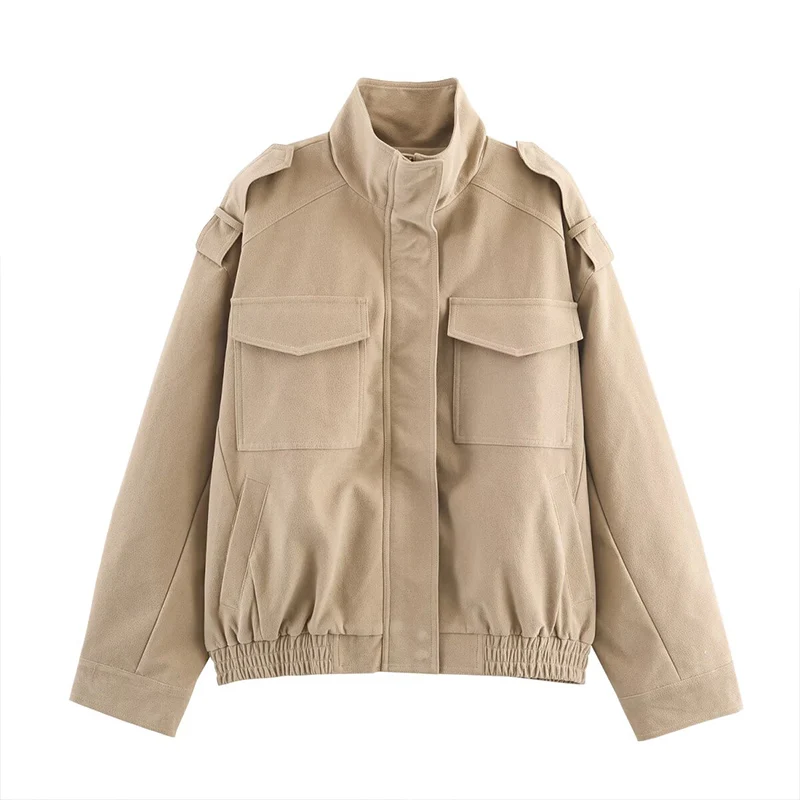 ZATRHMBM Autumn Women’s Clothing 2025 New Fashion Artificial Leather Loose Coat Retro Stand Collar Long Sleeve Female Coat